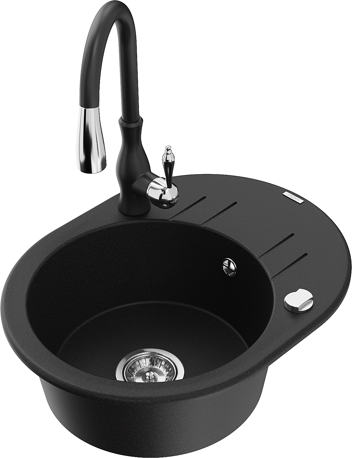 Mexen Kevin granito virtuvės plautuvė 1 skyrius su nusausintuvu ir virtuvinį maišytuvu Savita, juoda - 6517-77-672601-70