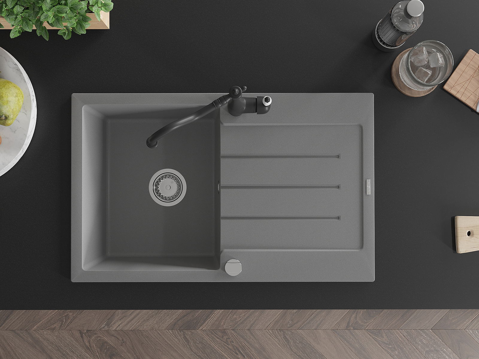 Mexen Bruno vienos kameros su nutekėjimo erdve bei virtuviniu maišytuvu Carla, pilkas - 6513-71-670700-70