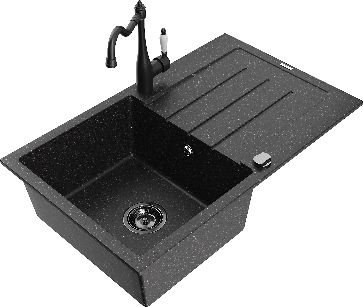 Mexen Bruno granito virtuvės kriauklė 1-skyrius su laikikliu ir maišytuvu Carla, juoda/sidabrinis metalikas - 6513-73-670700-70?