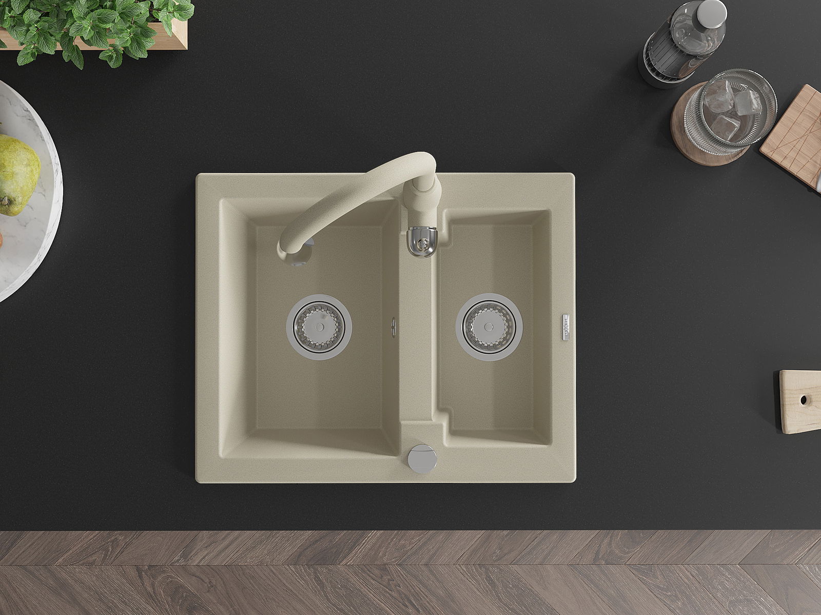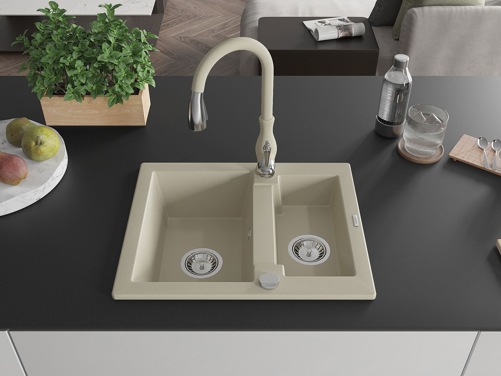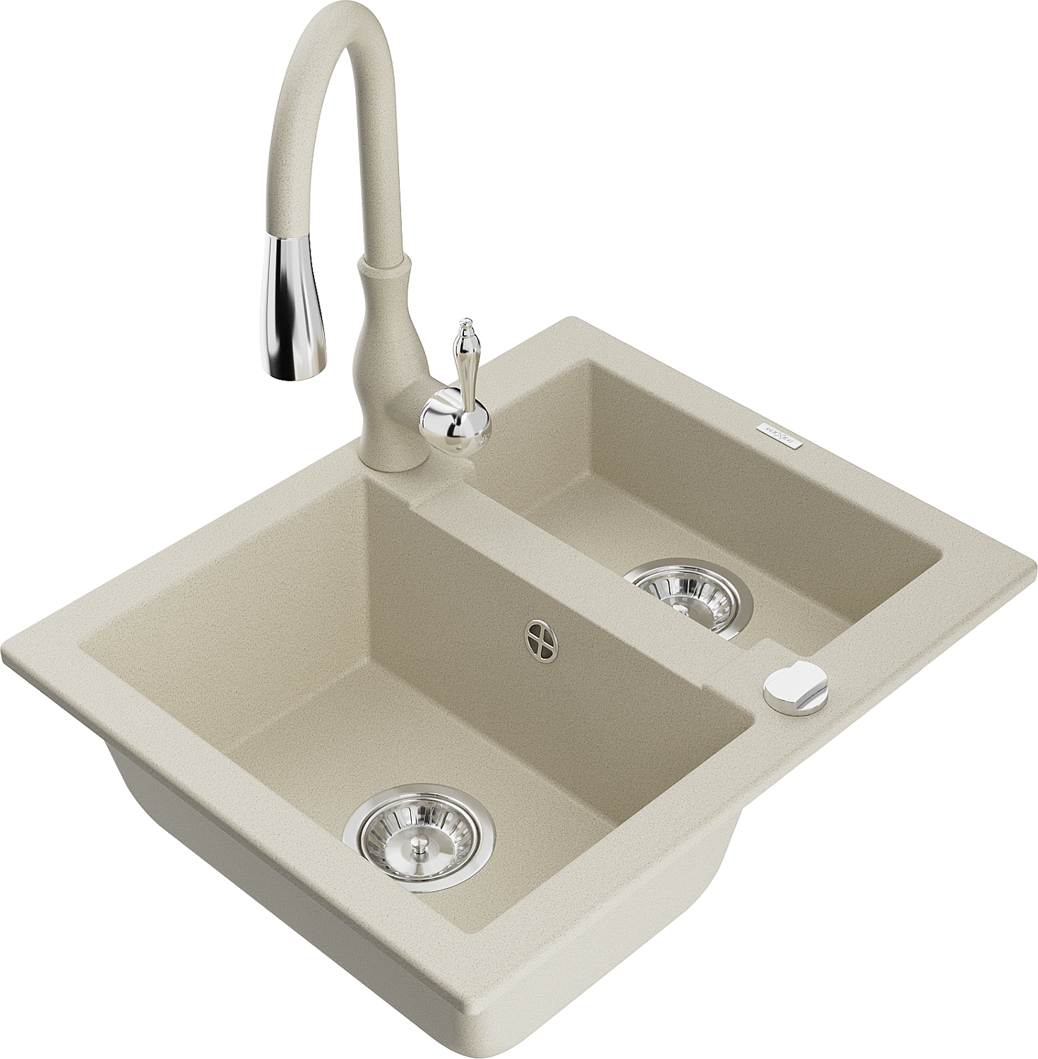 Mexen Carlos granitinis 1,5 dalių plautuvė su Savita virtuviniu maišytuvu, smėlio spalvos - 6518-69-672601-69