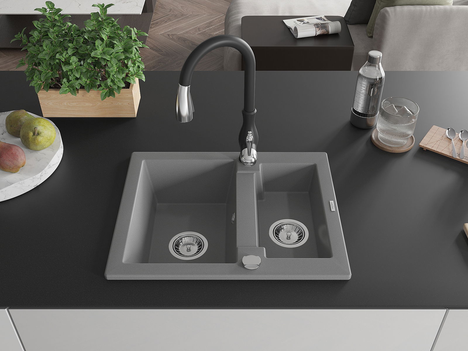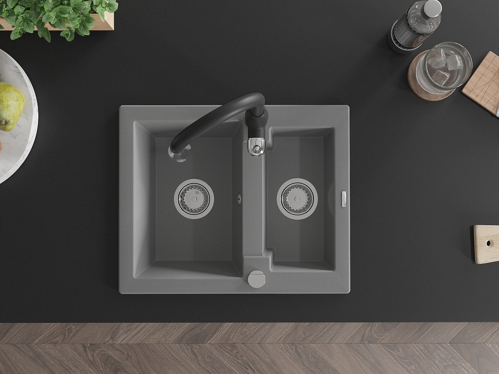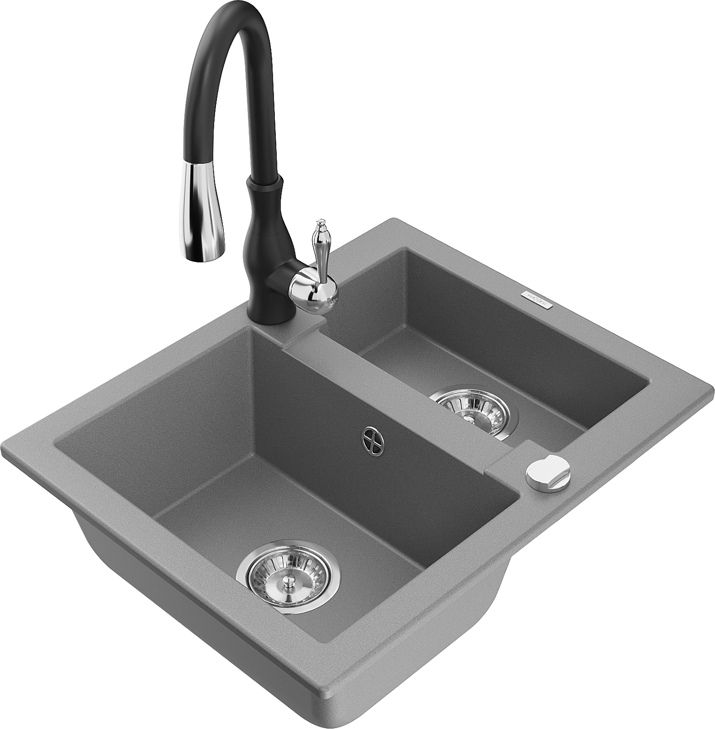 Mexen Carlos granito plautuvė 1,5 kamerų su virtuvės maišytuvu Savita, pilka - 6518-71-672601-70