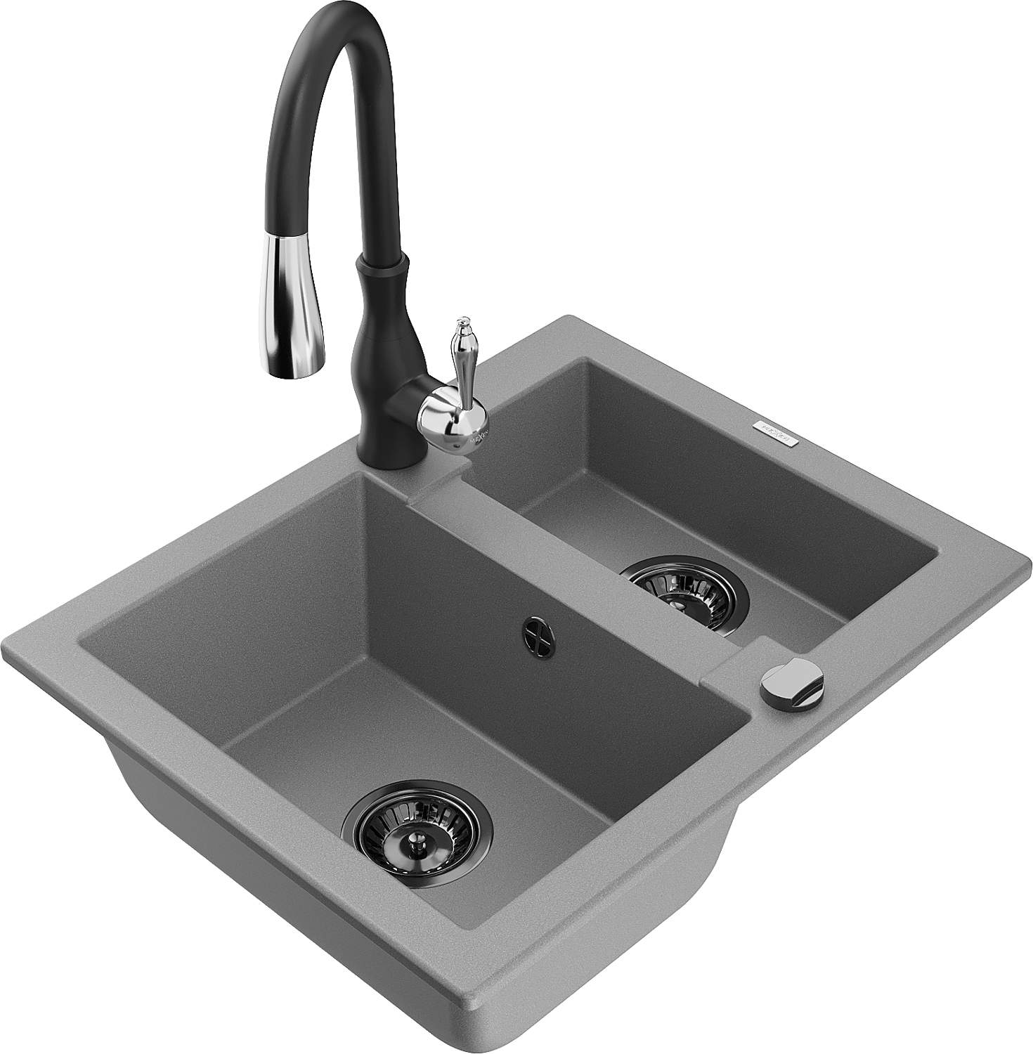 Mexen Carlos granitinė virtuvės plautuvė, 1,5 skyriaus su virtuviniu maišytuvu Savita, pilka - 6518-71-672601-70-B