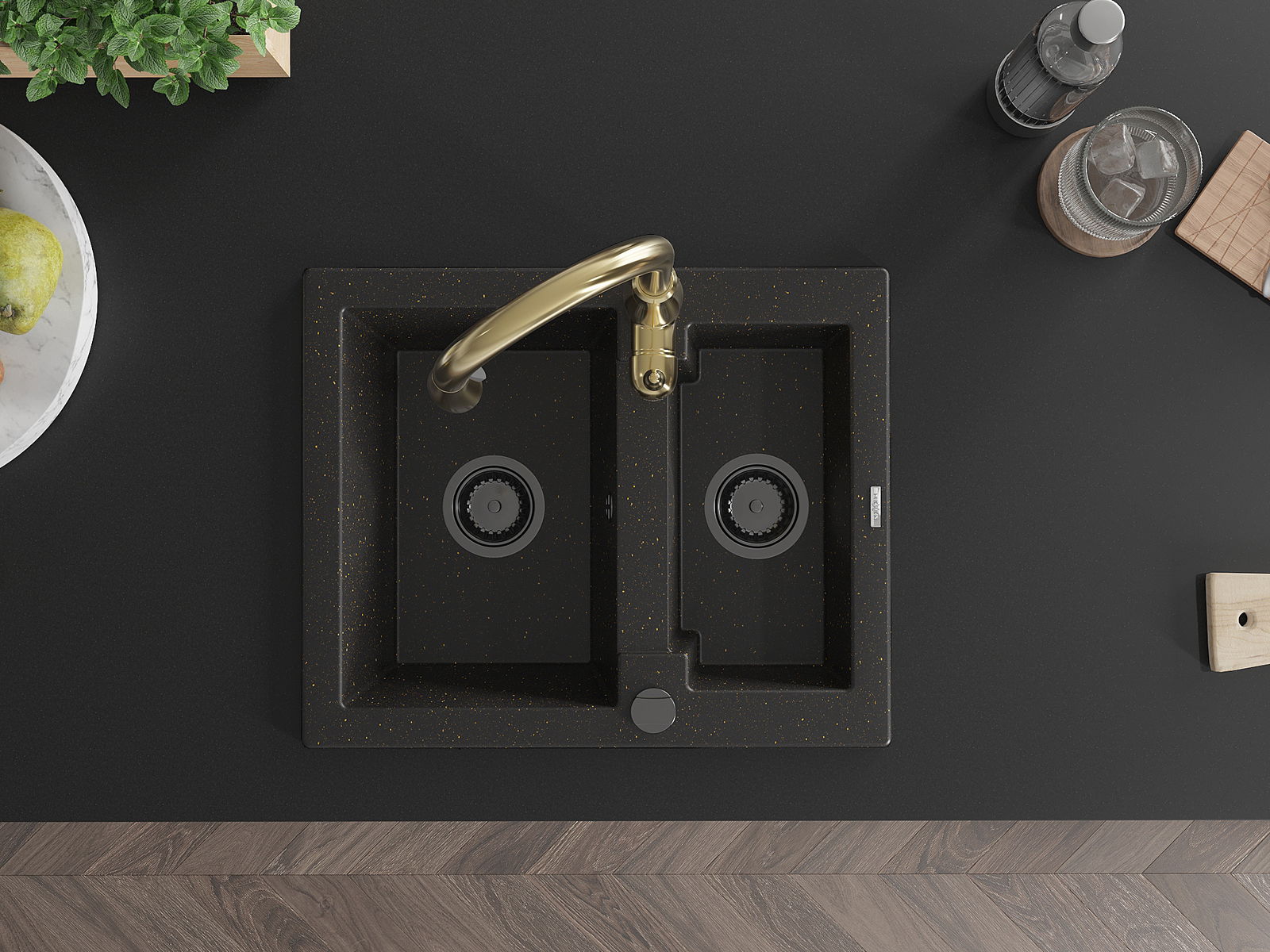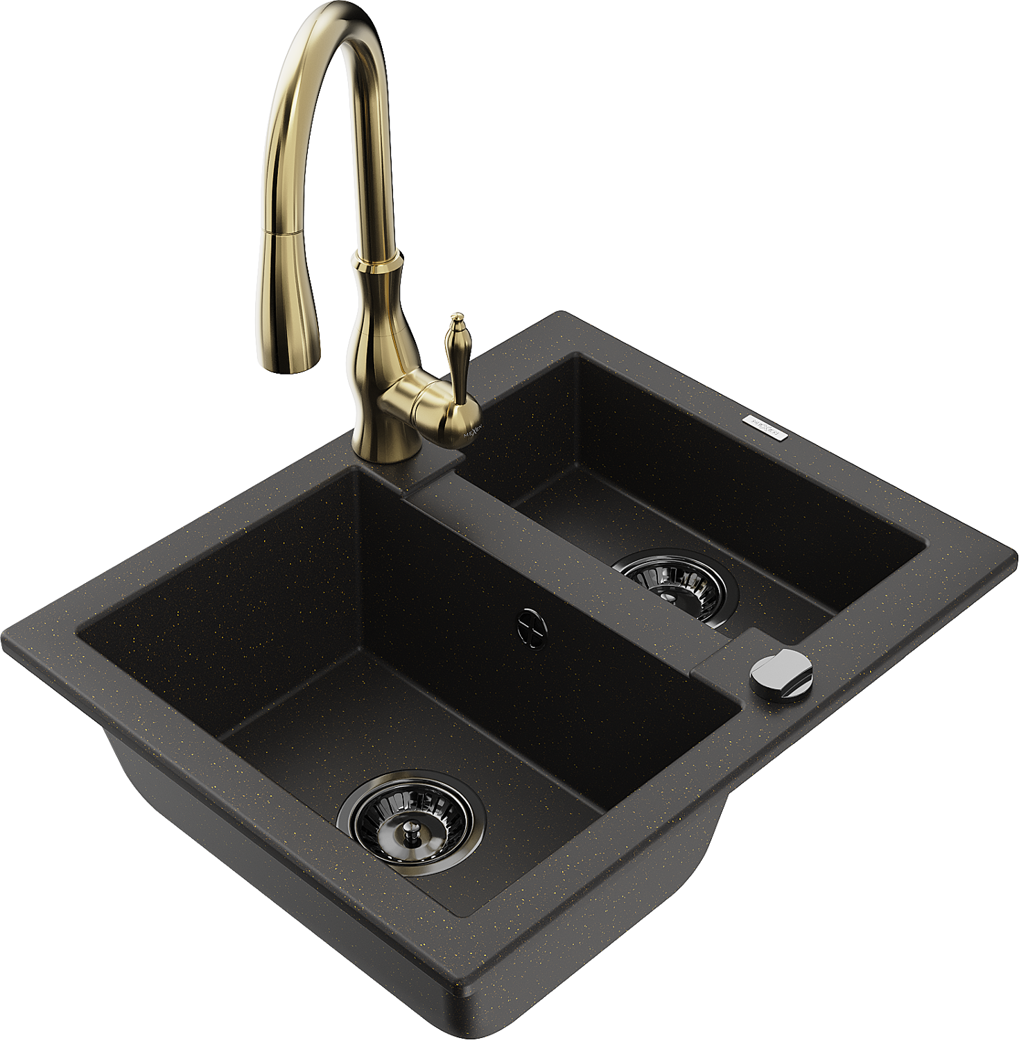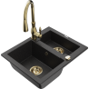 Mexen Carlos granitinis 1,5 kamera kriauklė su virtuviniu maišytuvu Savita, juodas/auksinis metalikas - 6518-75-672601-50-B