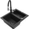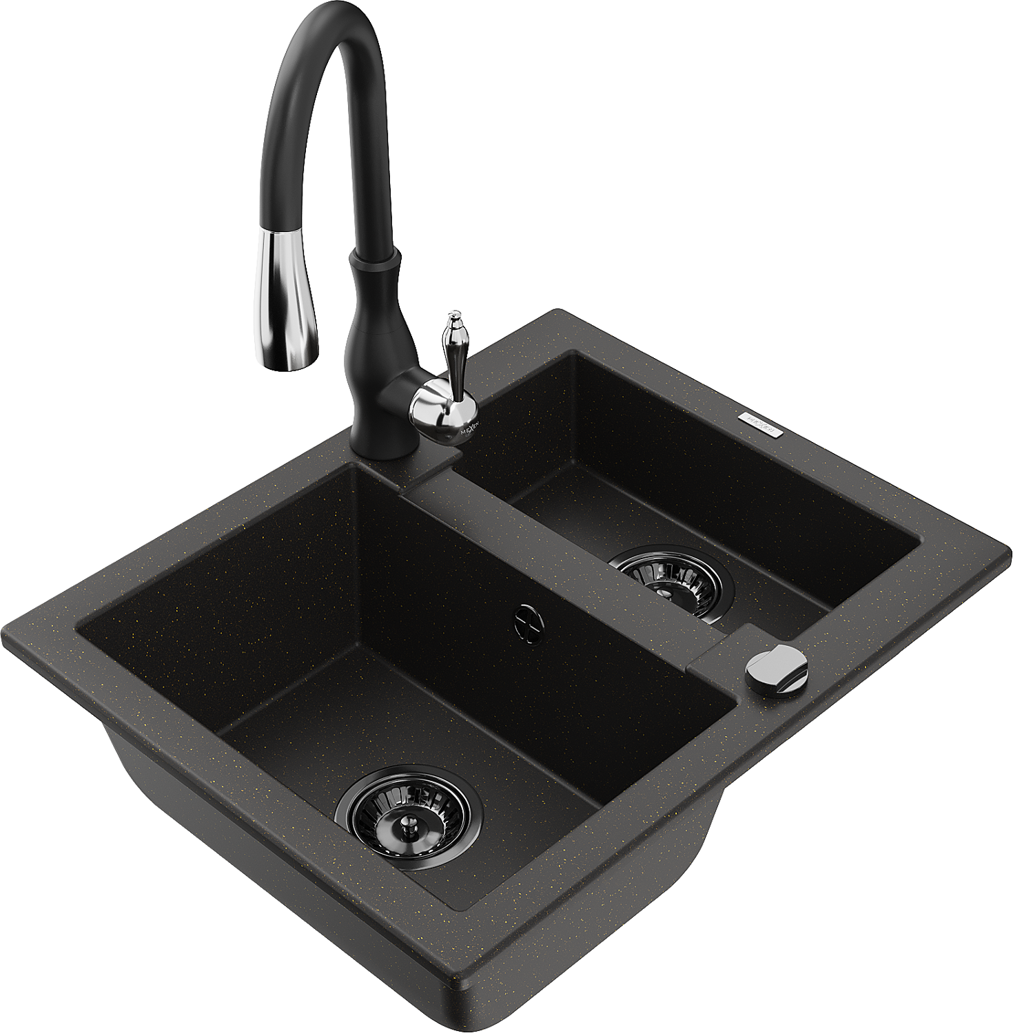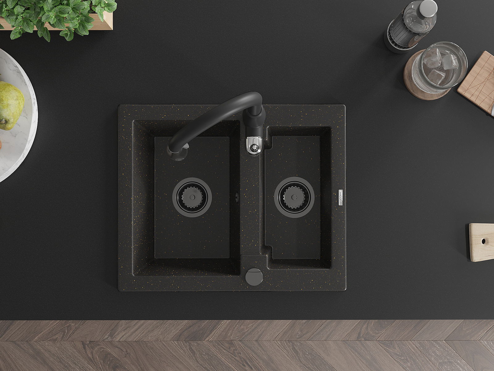 Mexen Carlos granito plautuvė 1,5 kamerų su virtuviniu maišytuvu Savita, juodas/auksinis metallic - 6518-75-672601-70-B
