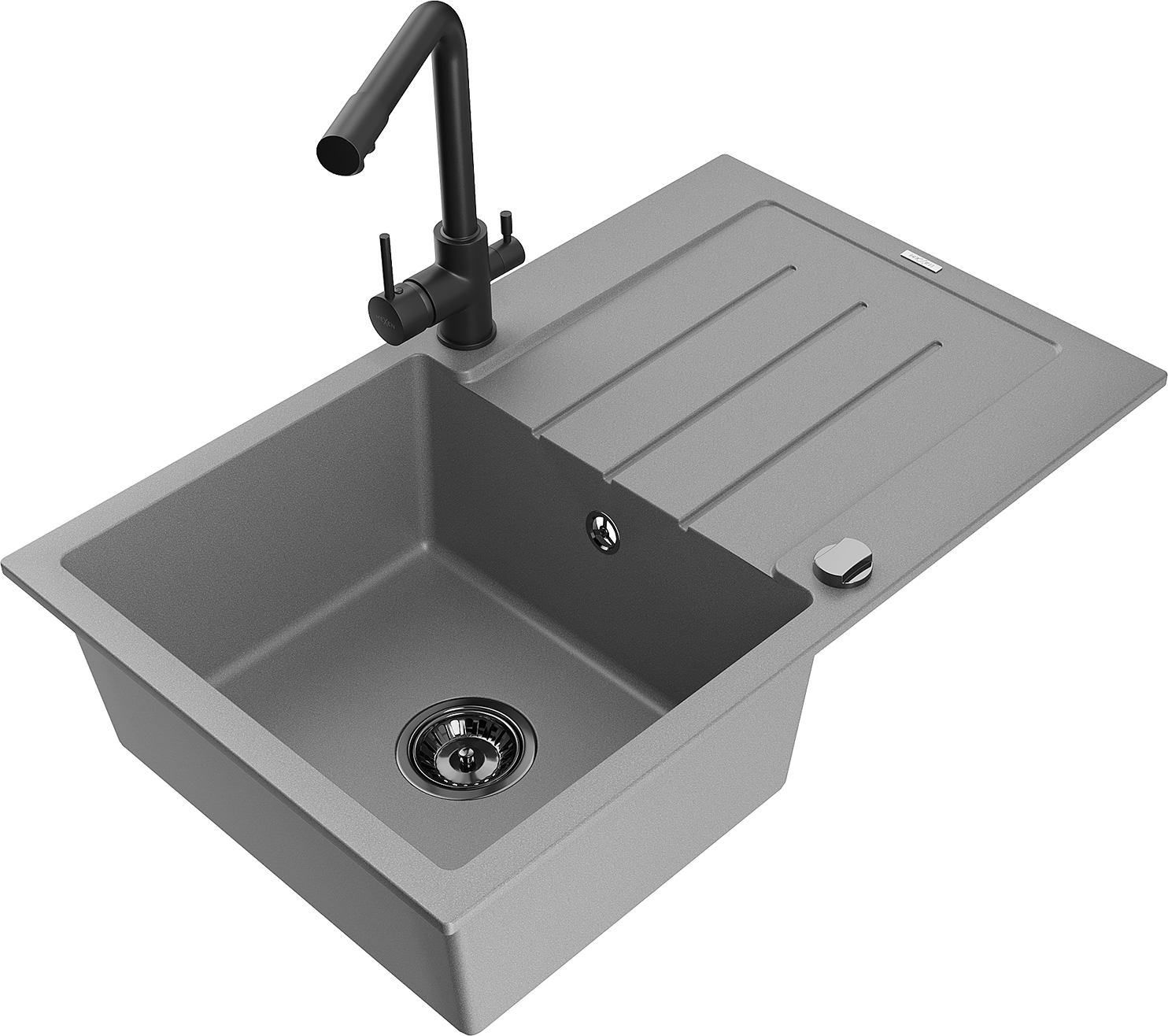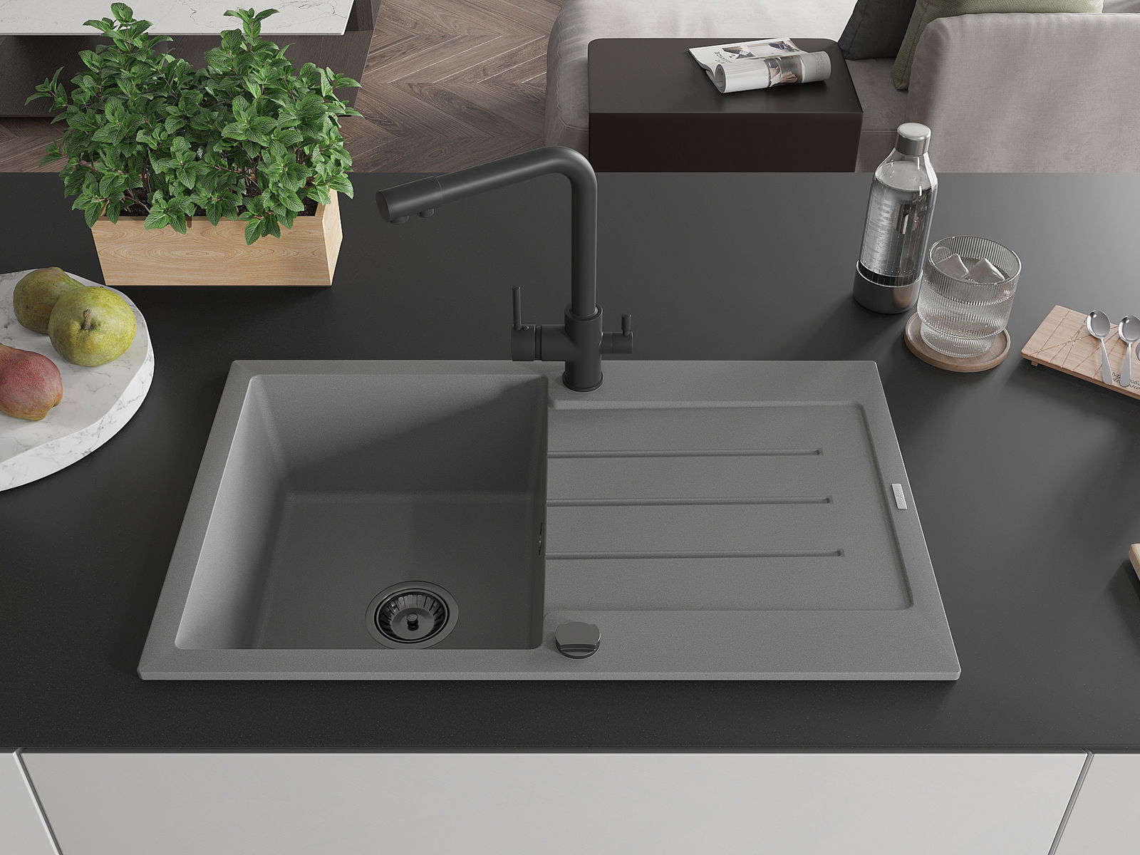 Mexen Bruno vienos dalies plautuvė su nusausinimo zona ir virtuviniu maišytuvu Duero, pilka - 6513-71-671600-70-B