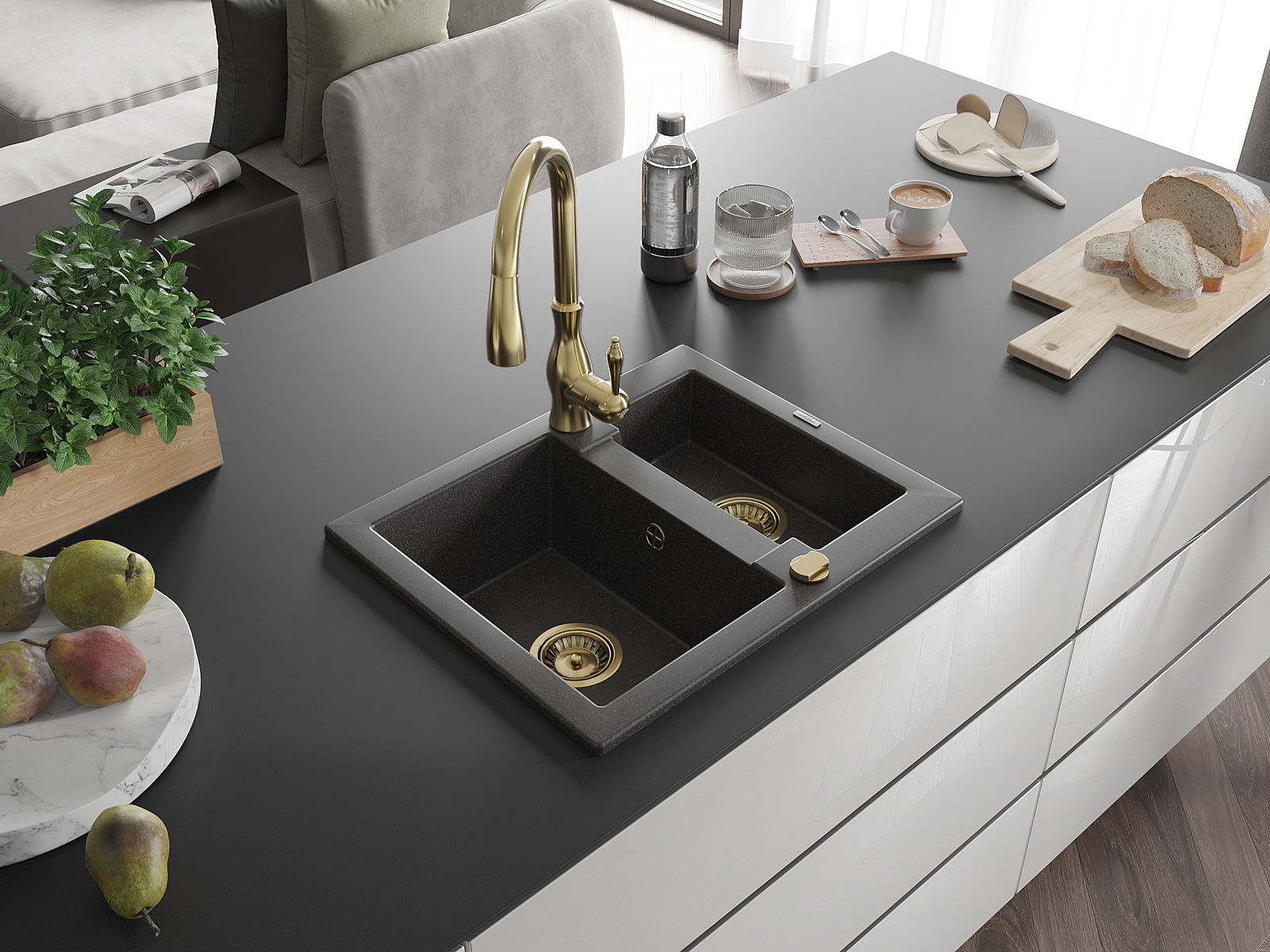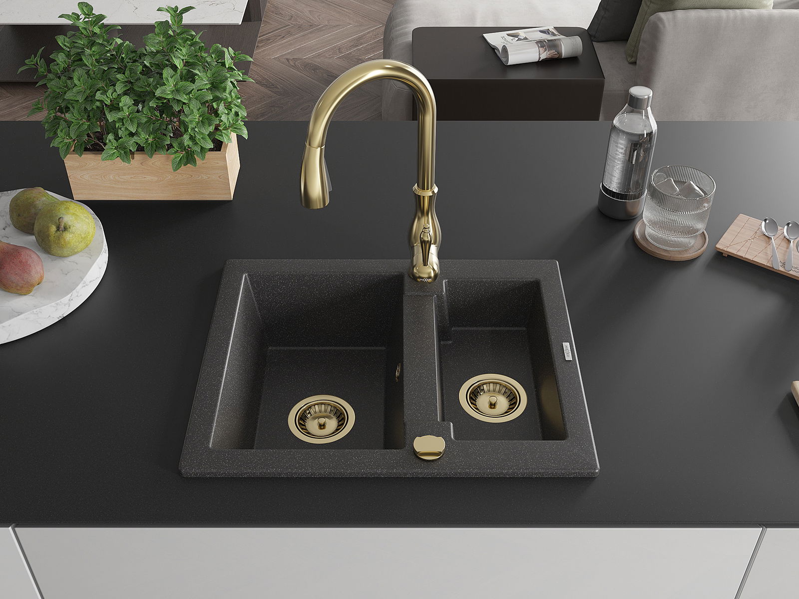 Kriauklės paviršius yra atsparūs dėmėms ir spalvos pasikeitimui, dėl kurio lengva valyti ir ilgą laiką išlaikyti savo spalvą. Estetinis ir praktiškai papildantis kiekvieną virtuvę.