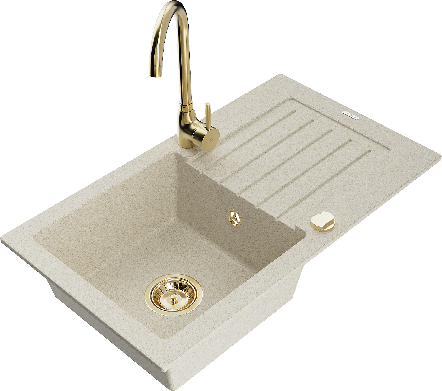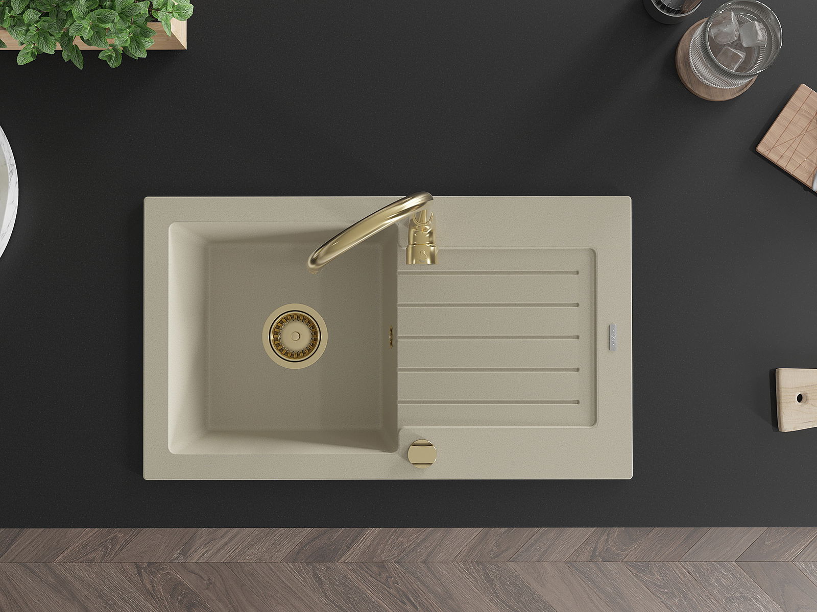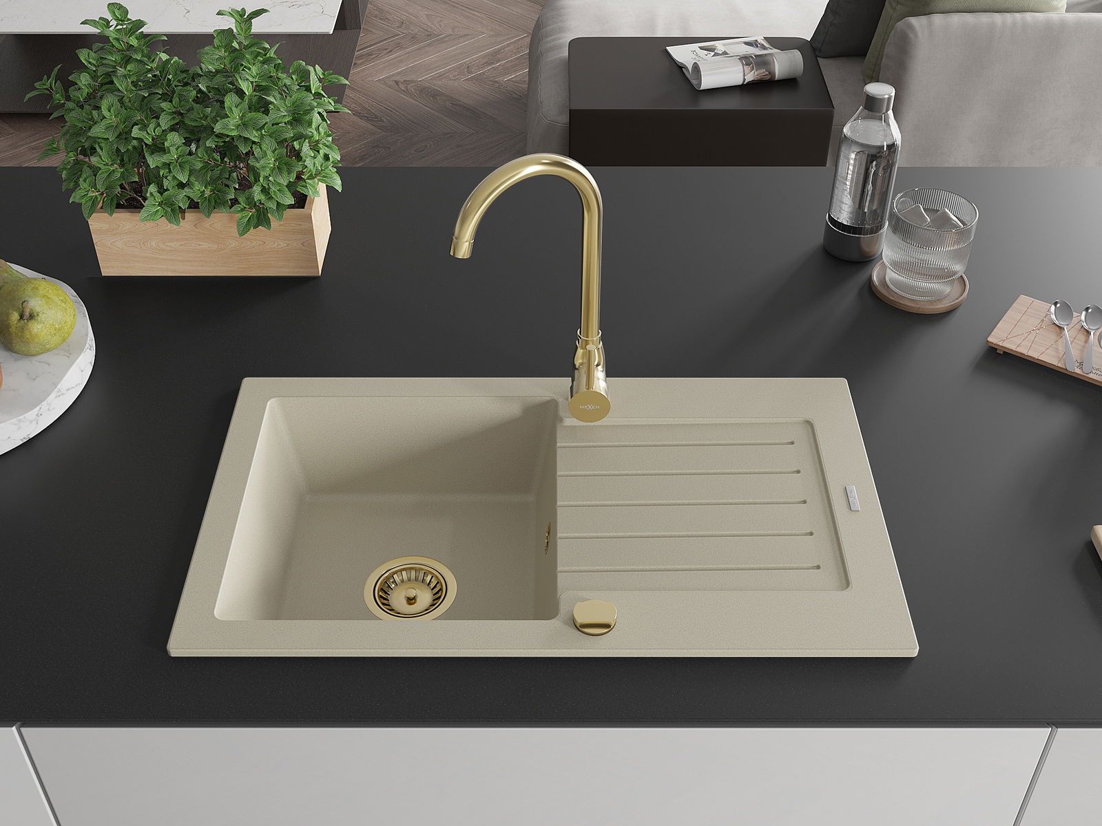 Mexen Pablo granito plautuvė 1 skyrius su nusausintoju ir virtuvės maišytuvu Telma, smėlio spalvos - 6510-69-670200-50