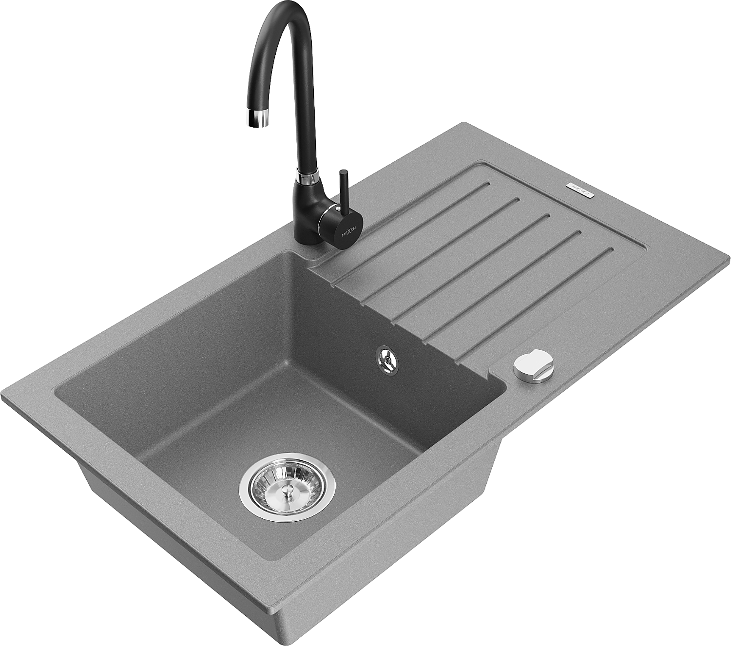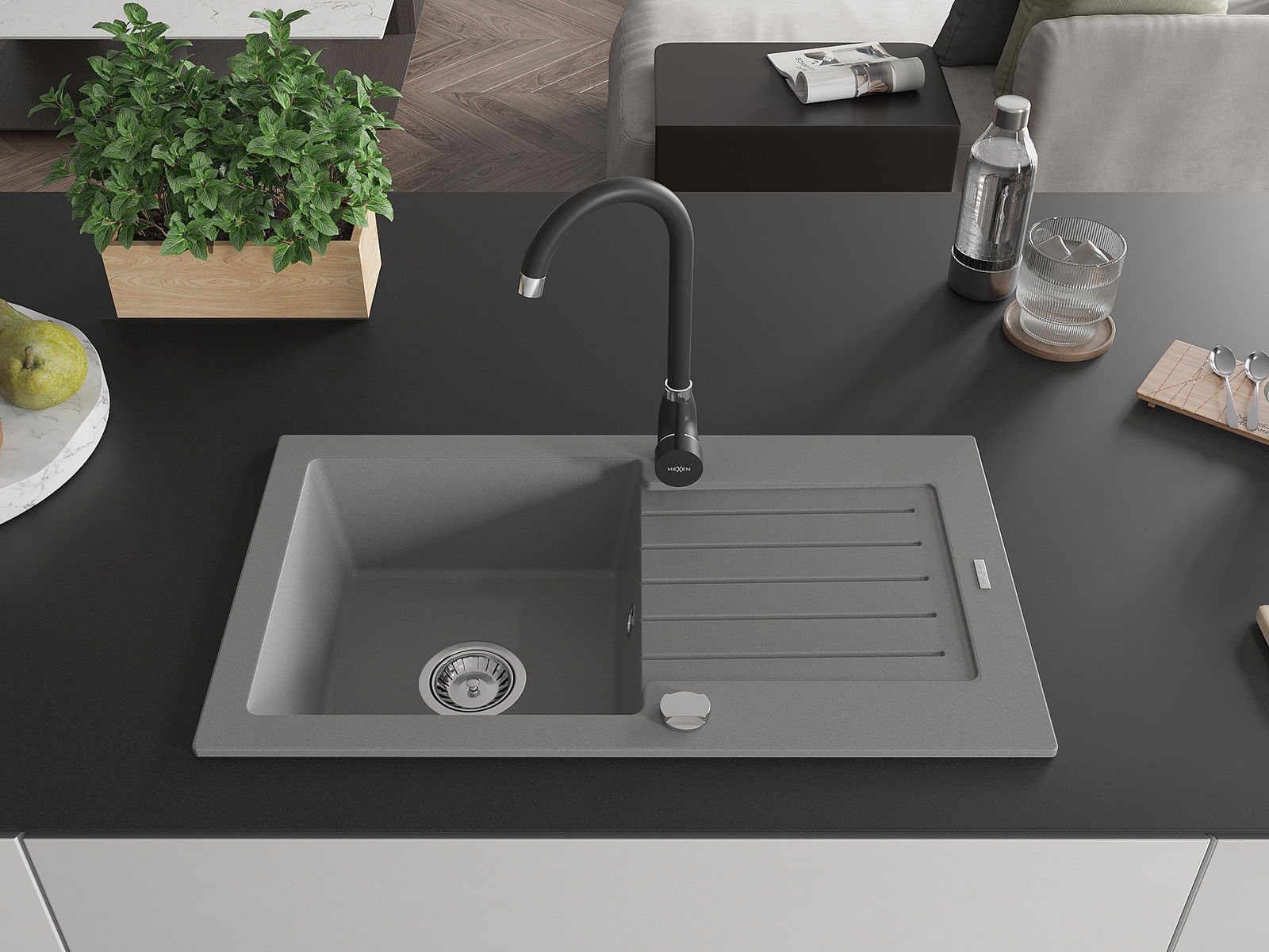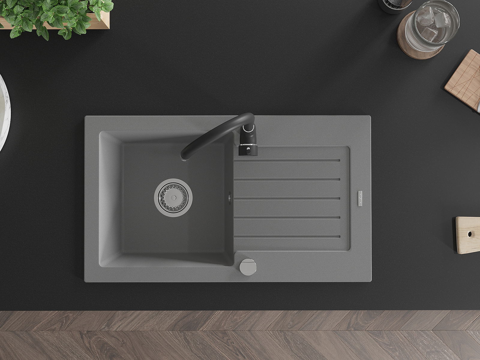 Mexen Pablo granito plautuvė su viena kamera, nubėgėju ir virtuviniu maišytuvu Telma, pilka - 6510-71-670200-70