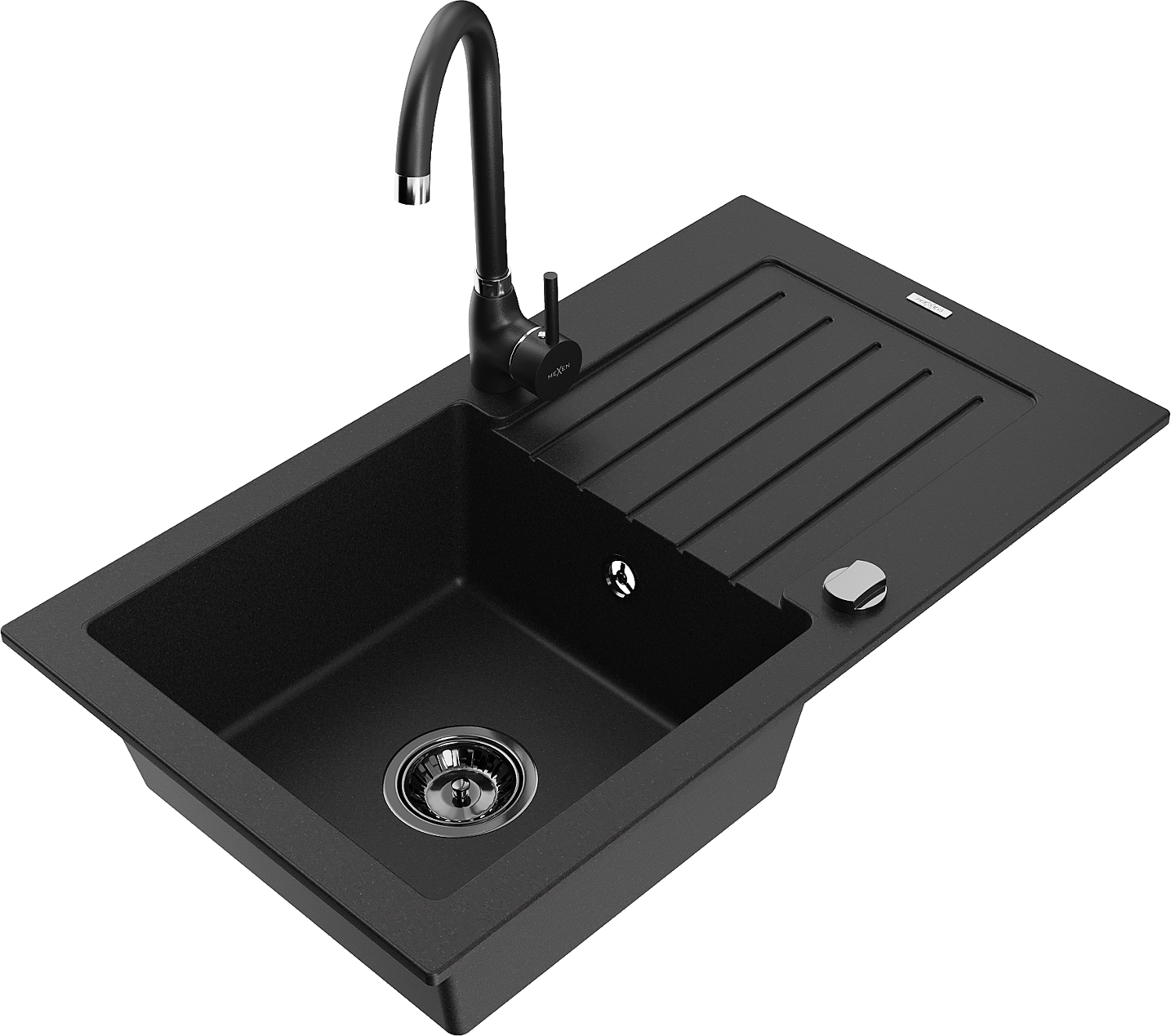 Mexen Pablo granitinis plautuvės, 1 skyrius su lašėjimo zona ir virtuvės maišytuvu Telma, juodas - 6510-77-670200-70-B