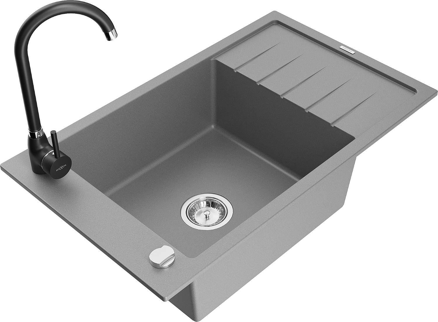 Mexen Elias granitinis vienos kameros plautuvas su lašintuvu ir virtuviniu maišytuvu Telma, pilkas - 6511-71-670200-70