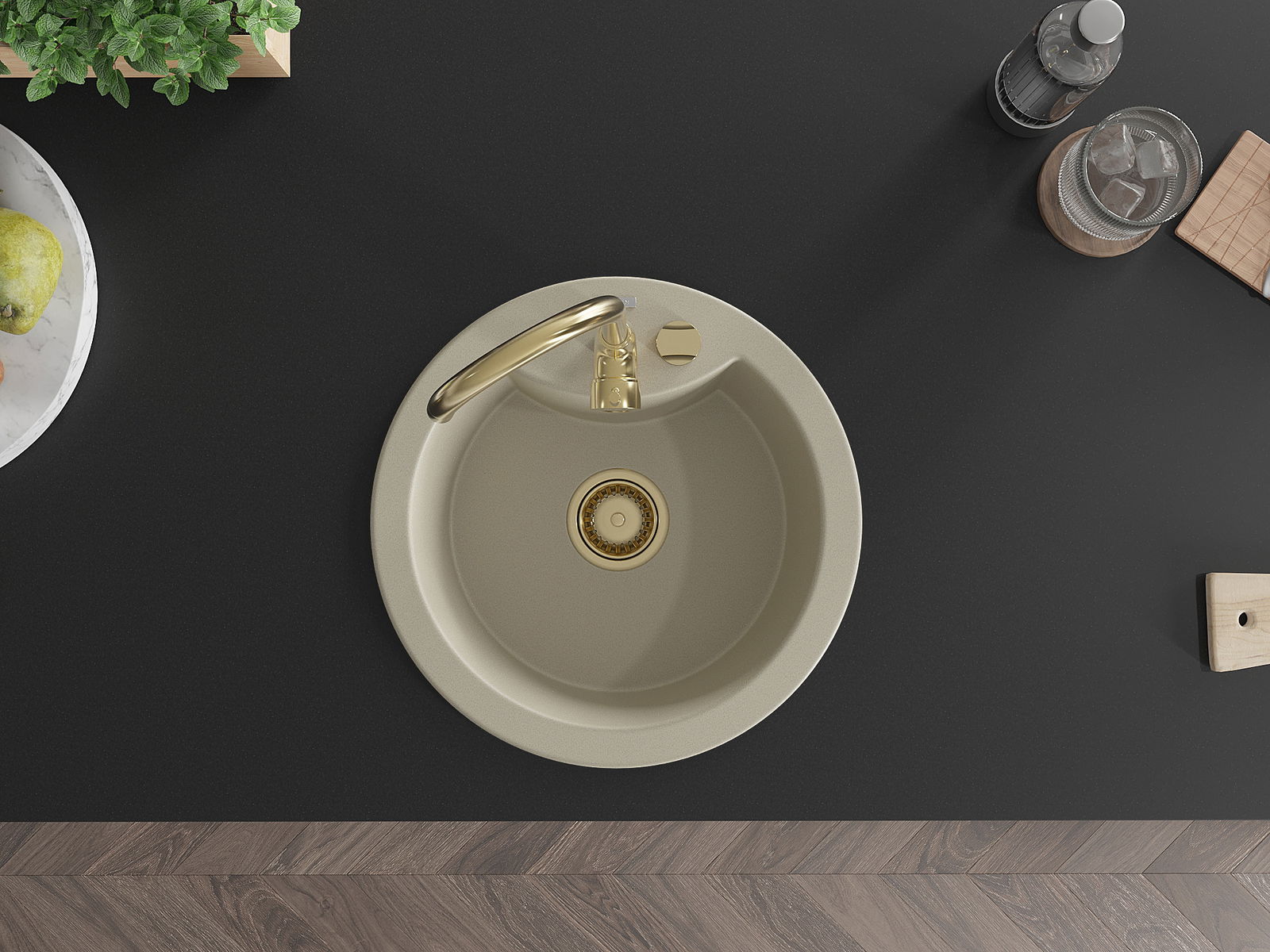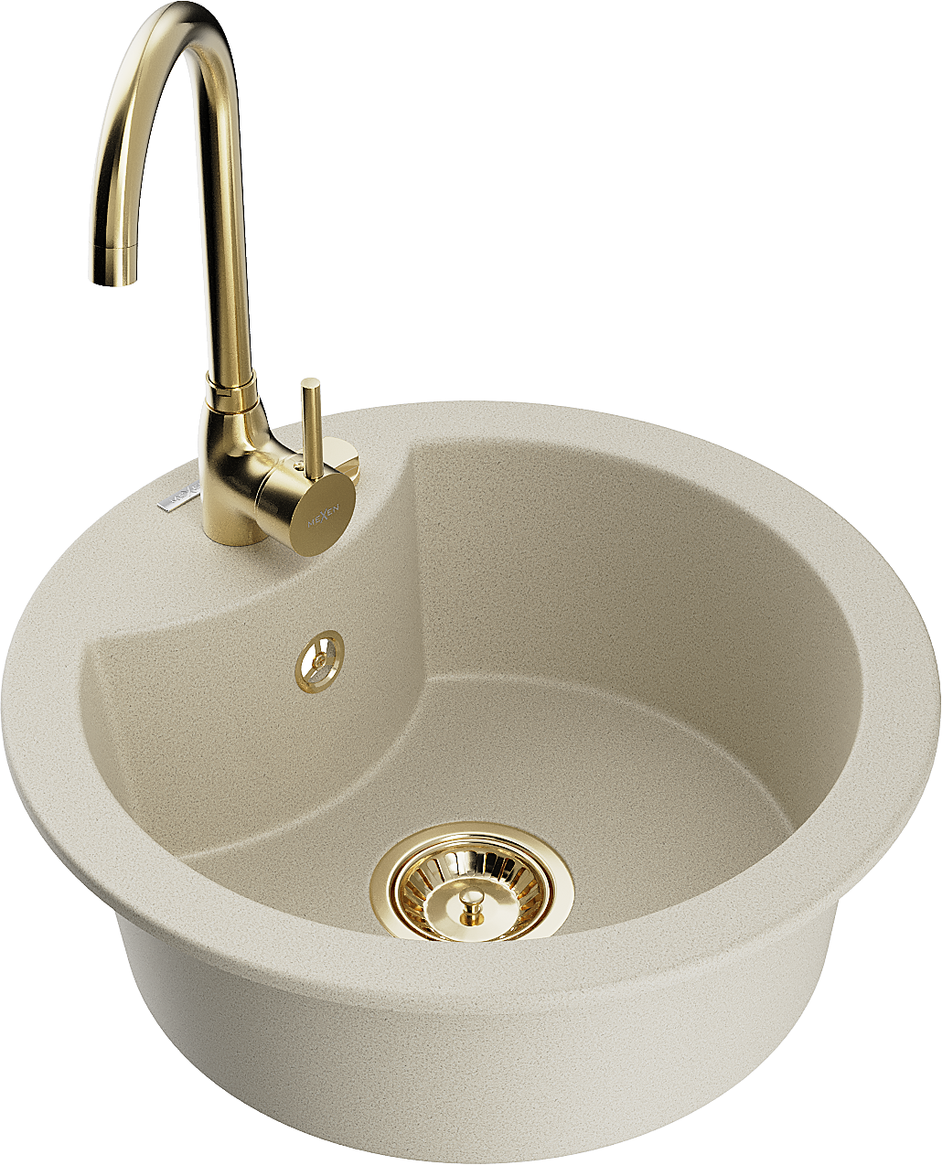 Mexen Diego granitinė vienos plautuvės kriauklė su virtuviniu maišytuvu Telma, smėlio spalvos - 6512-69-670200-50