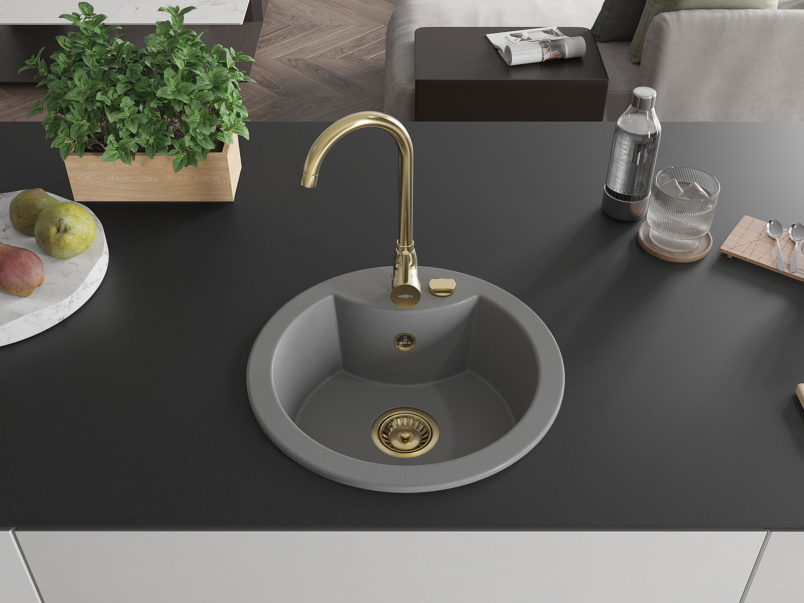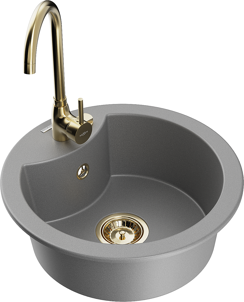 Mexen Diego granitinė vienos plautuvės kriauklė su Telma virtuviniu maišytuvu, pilka - 6512-71-670200-50