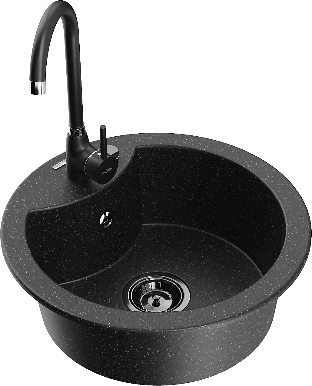 Mexen Diego granitinis vienos plautuvės komplektas su Telma virtuviniu maišytuvu, juoda/sidabrinė - 6512-73-670200-70-B