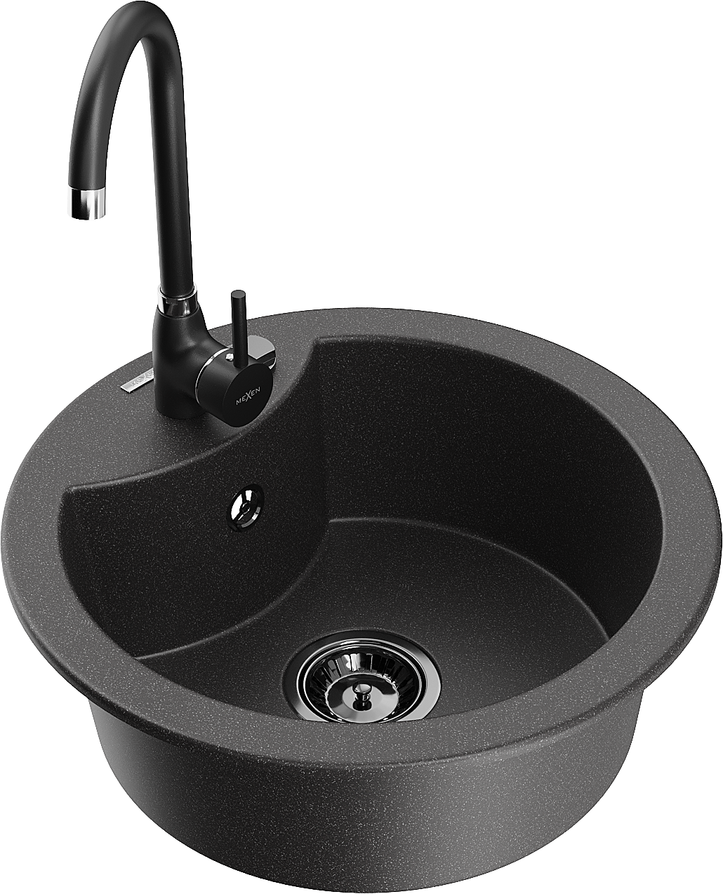 Mexen Diego vienos kameros granitinė plautuvė su Telma virtuviniu maišytuvu, juodas taškuotas - 6512-76-670200-70-B