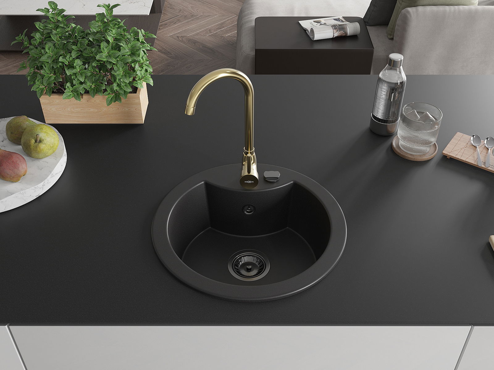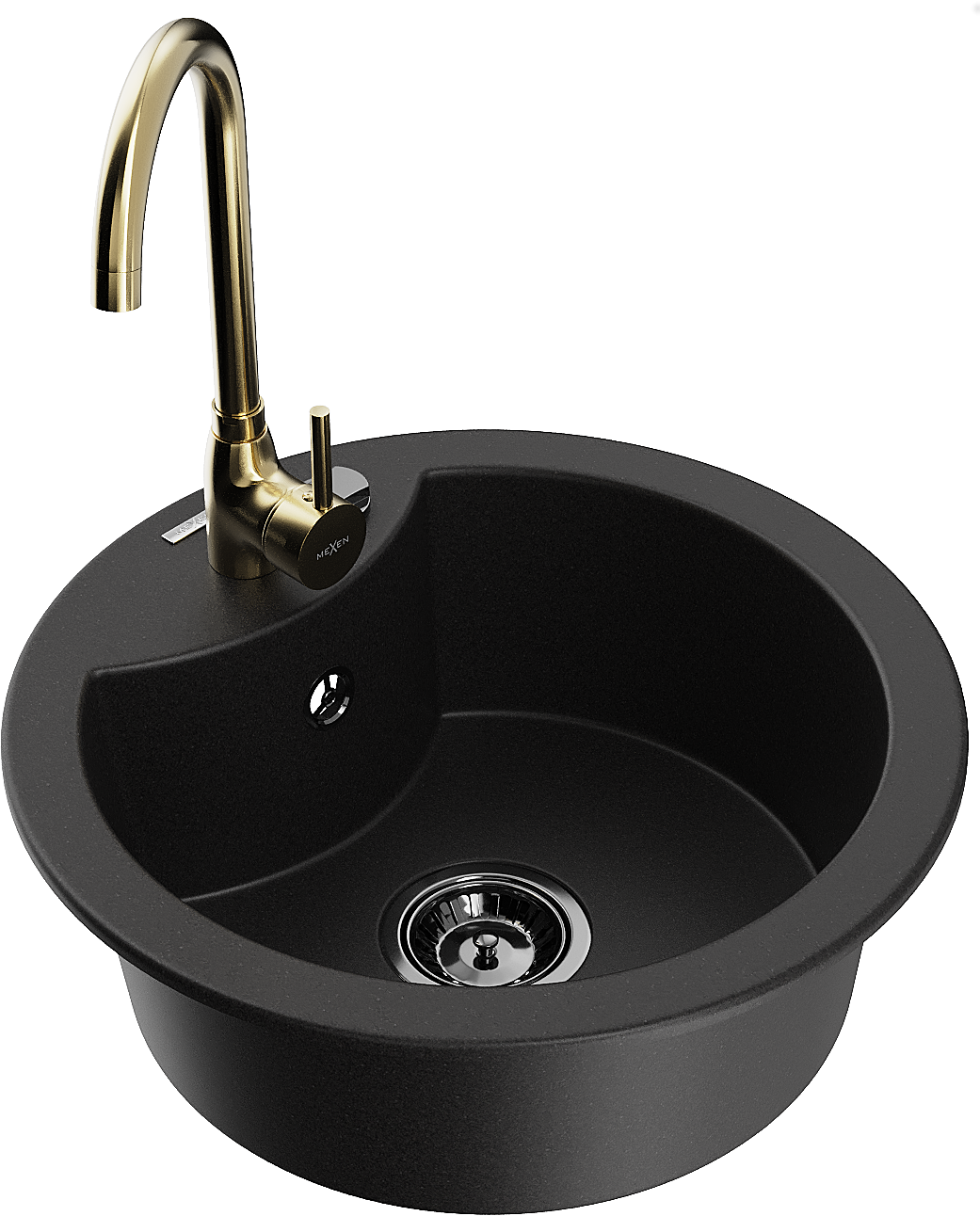 Mexen Diego granitinė plautuvė su viena kamera ir virtuviniu maišytuvu Telma, juodas - 6512-77-670200-50-B