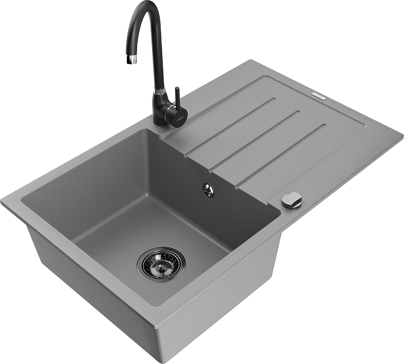 Mexen Bruno vieno dubens granito plautuvė su nusausinimo plokštele ir virtuviniu maišytuvu Telma, pilka - 6513-71-670200-70-B