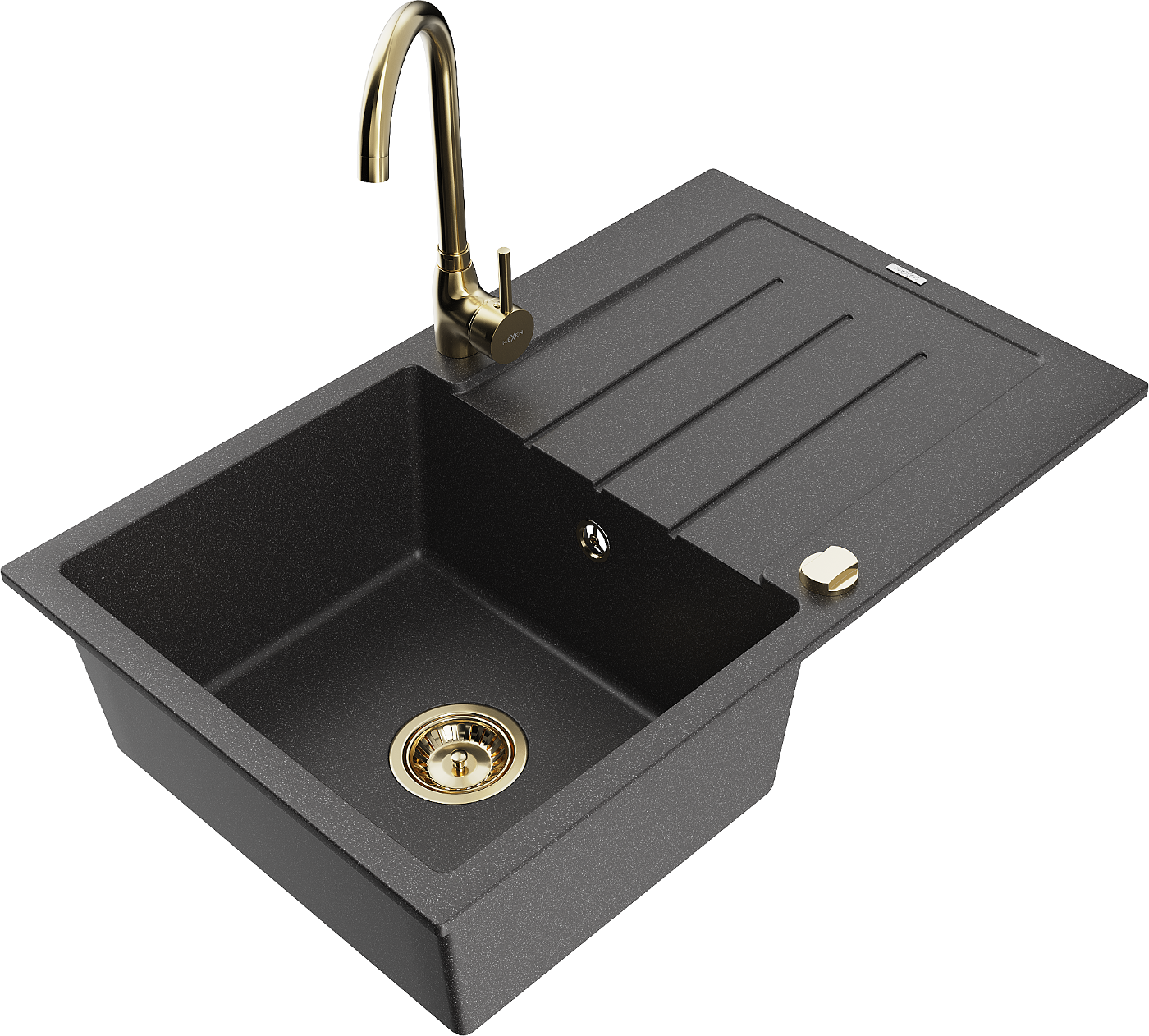 Mexen Bruno granitinis vienos kameros kriauklė su nusausintuvu ir virtuviniu maišytuvu Telma, juodas dėmėtas - 6513-76-670200-5?