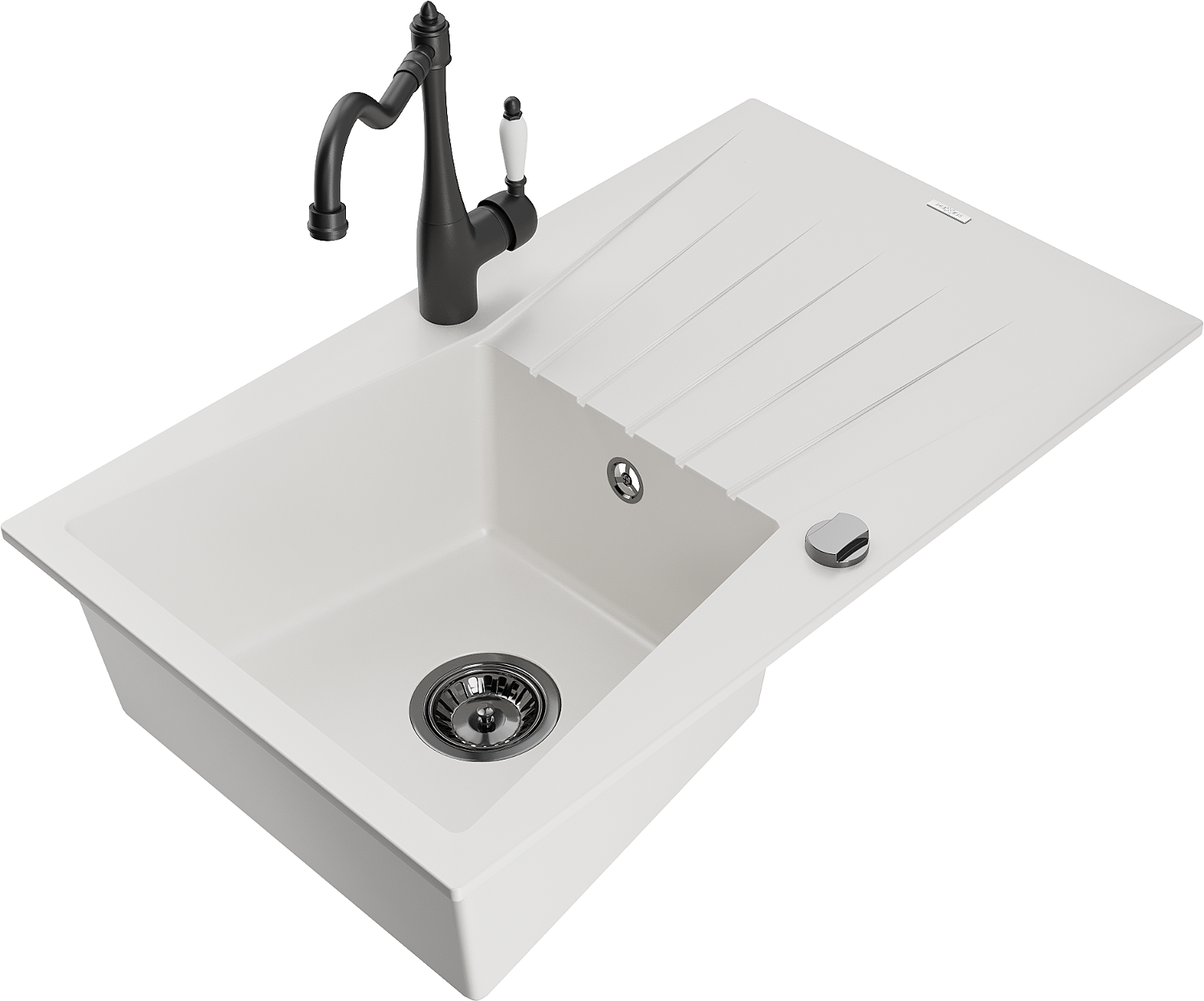 Mexen Cesar granitinė vieno dubens plautuvė su nusausintuvu ir virtuviniu maišytuvu Carla, balta - 6514-20-670700-70