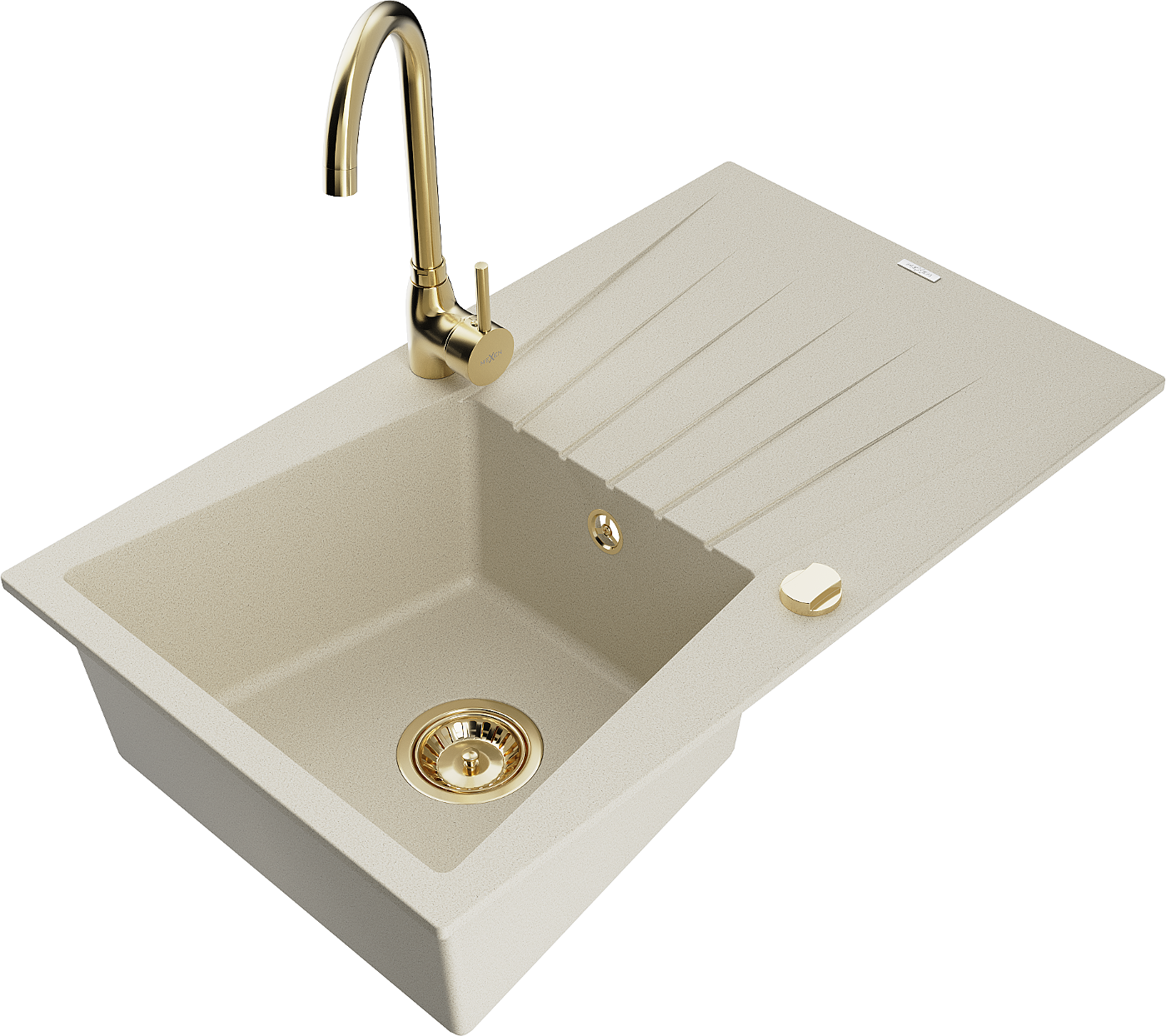 Mexen Cesar granitinis plautuvė 1 kamerų su nusausinimo plokšte ir virtuvės maišytuvu Telma, smėlio spalvos - 6514-69-670200-50