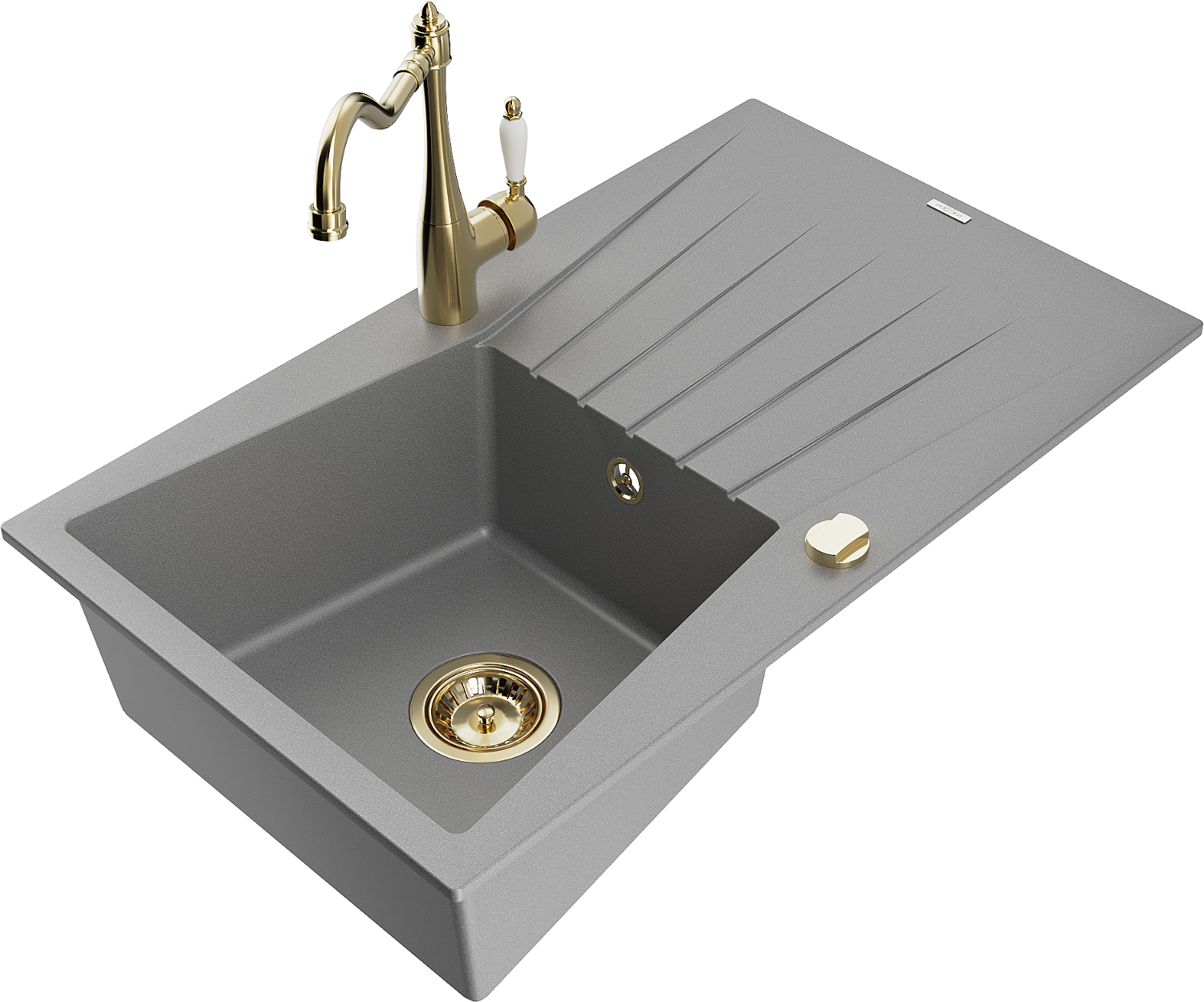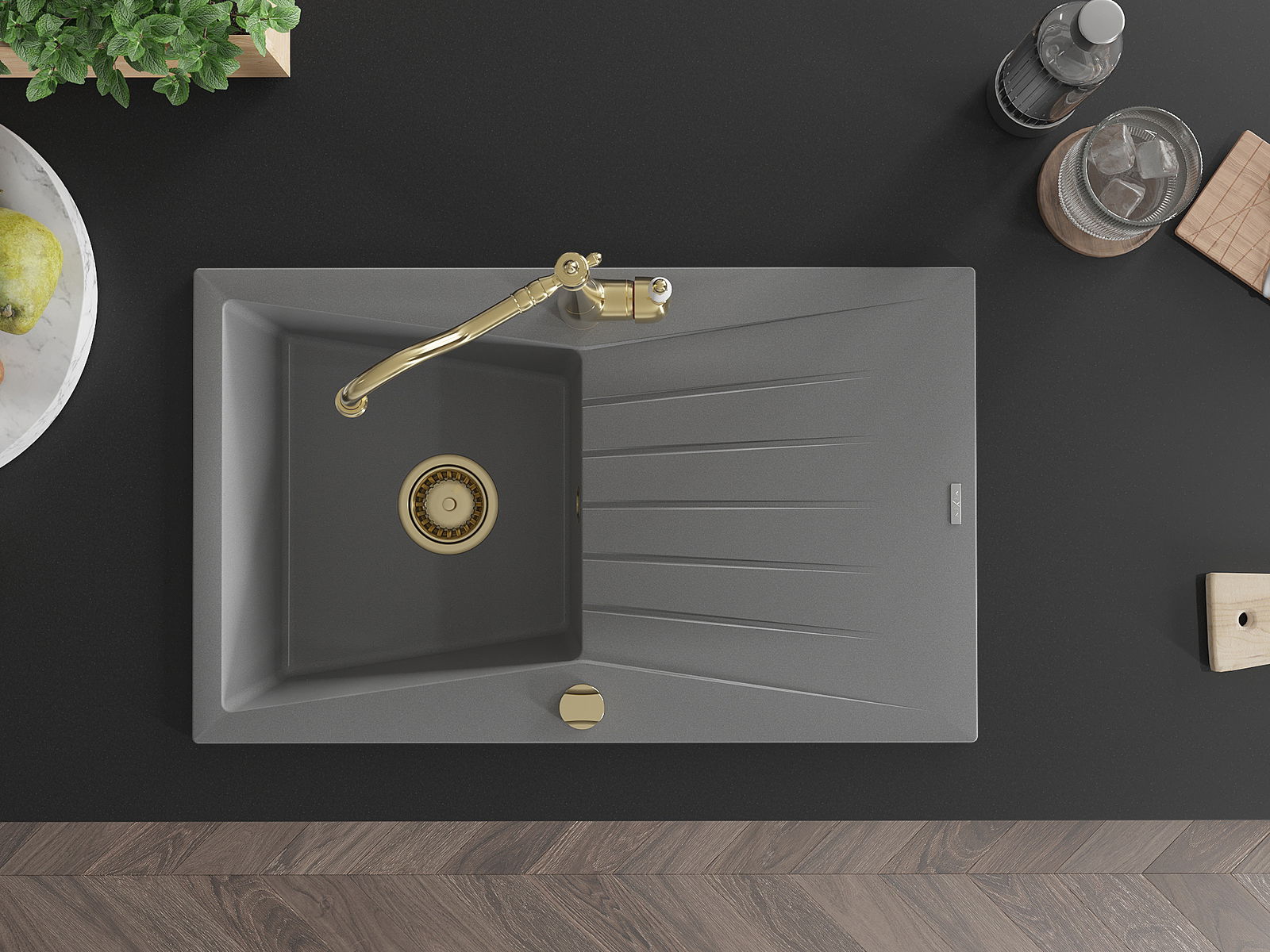 Mexen Cesar granitinė vienos kameros virtuvės plautuvė su nusausintoju ir virtuviniu maišytuvu Carla, pilka