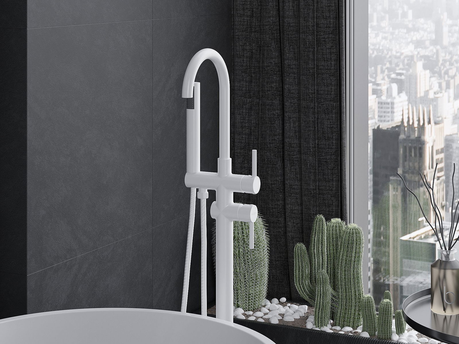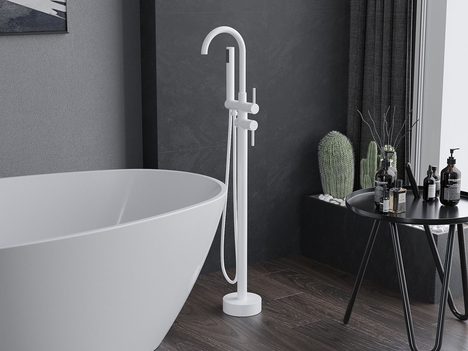 Mexen Alma laisvai pastatomas vonios maišytuvas, baltas - 75033-20