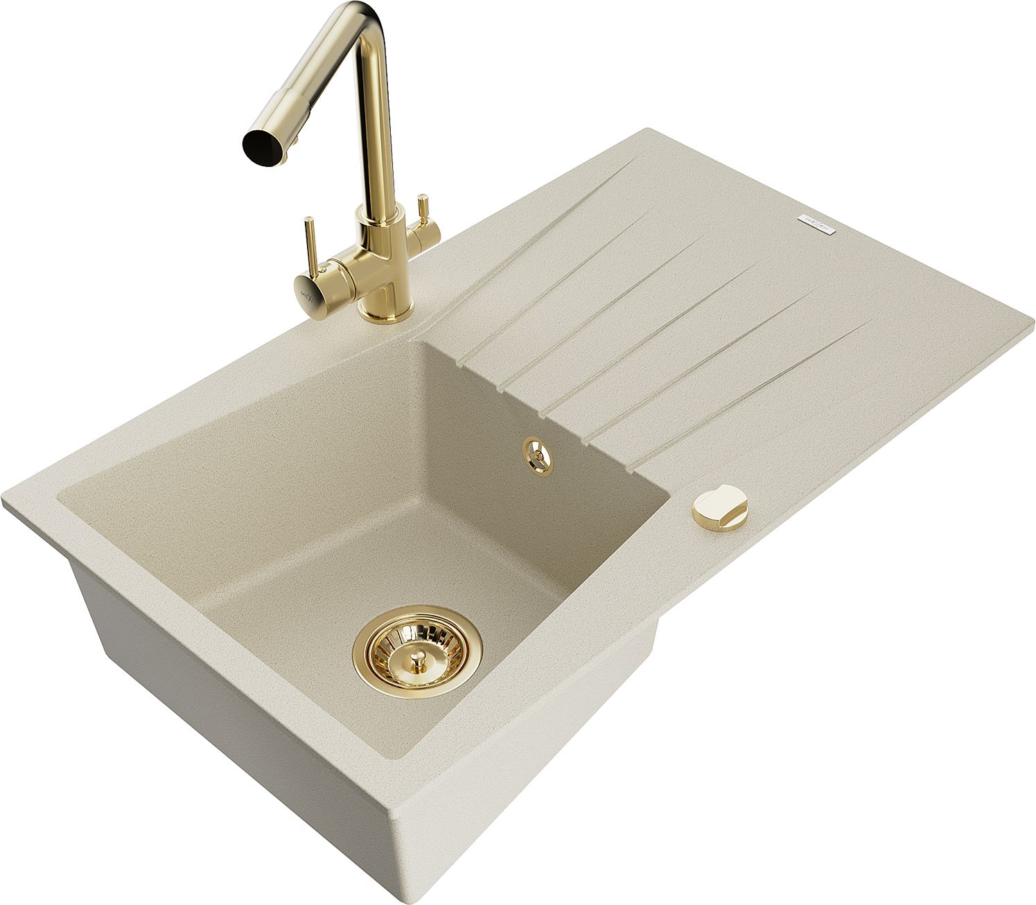 Mexen Cesar vienos kameros granito kriauklė su nusausintuvu ir virtuviniu maišytuvu Duero, smėlinė - 6514-69-671600-50