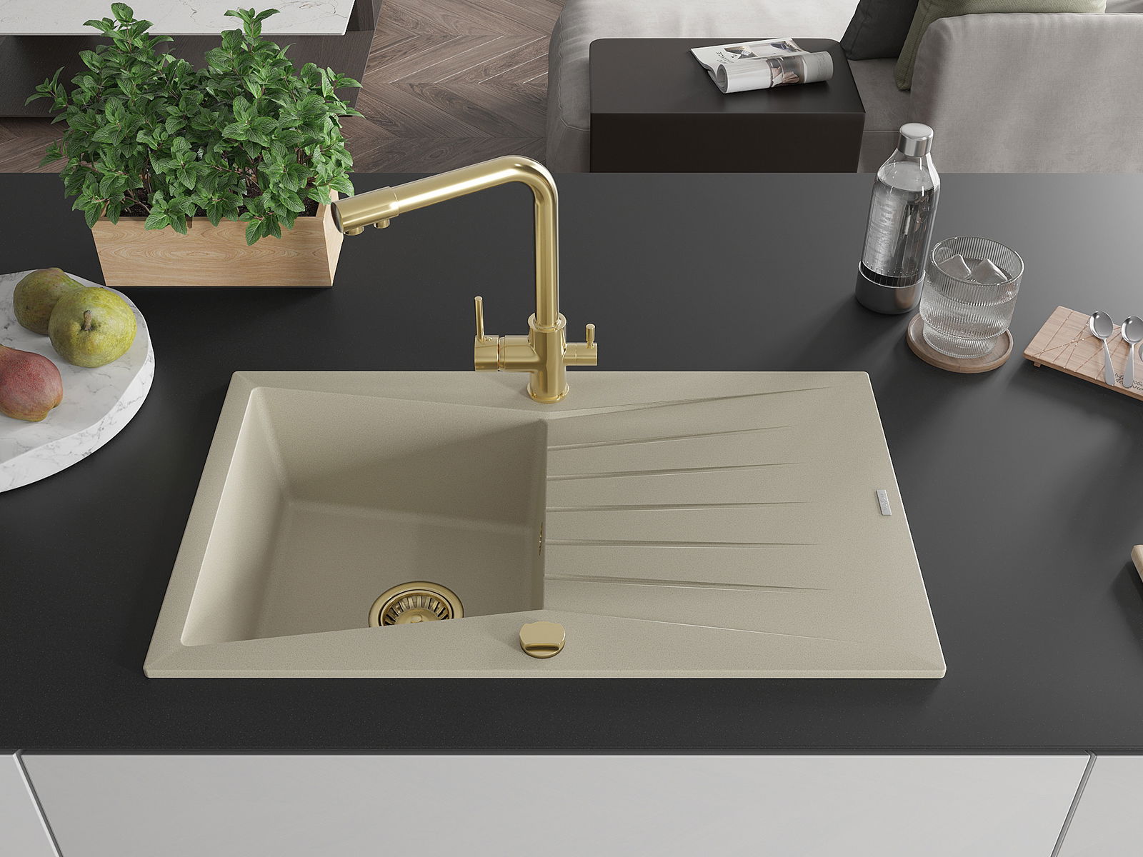 Kriauklės paviršius yra atsparus dėmėms ir spalvos pokyčiams, todėl jį lengva prižiūrėti ir jis išlaiko savo spalvą ilgą laiką. Estetiškai ir praktiškai papildo kiekvieną virtuvę.
