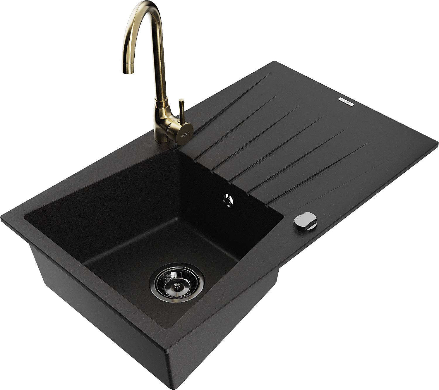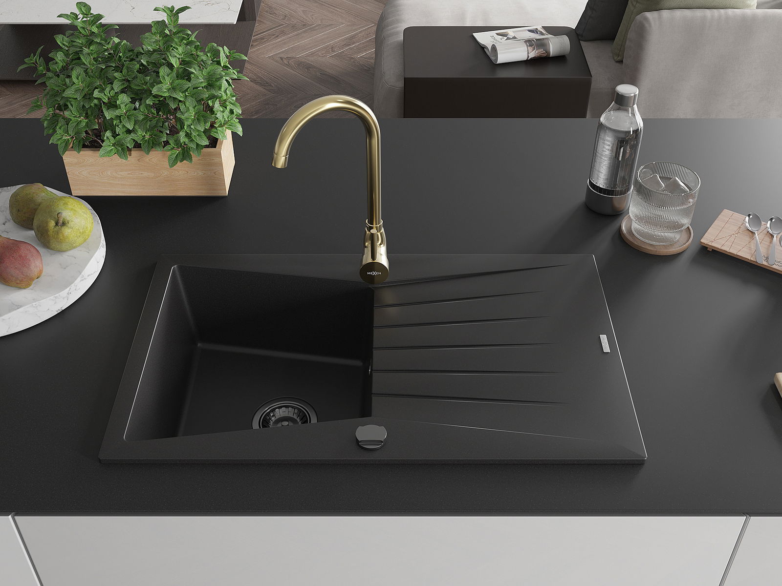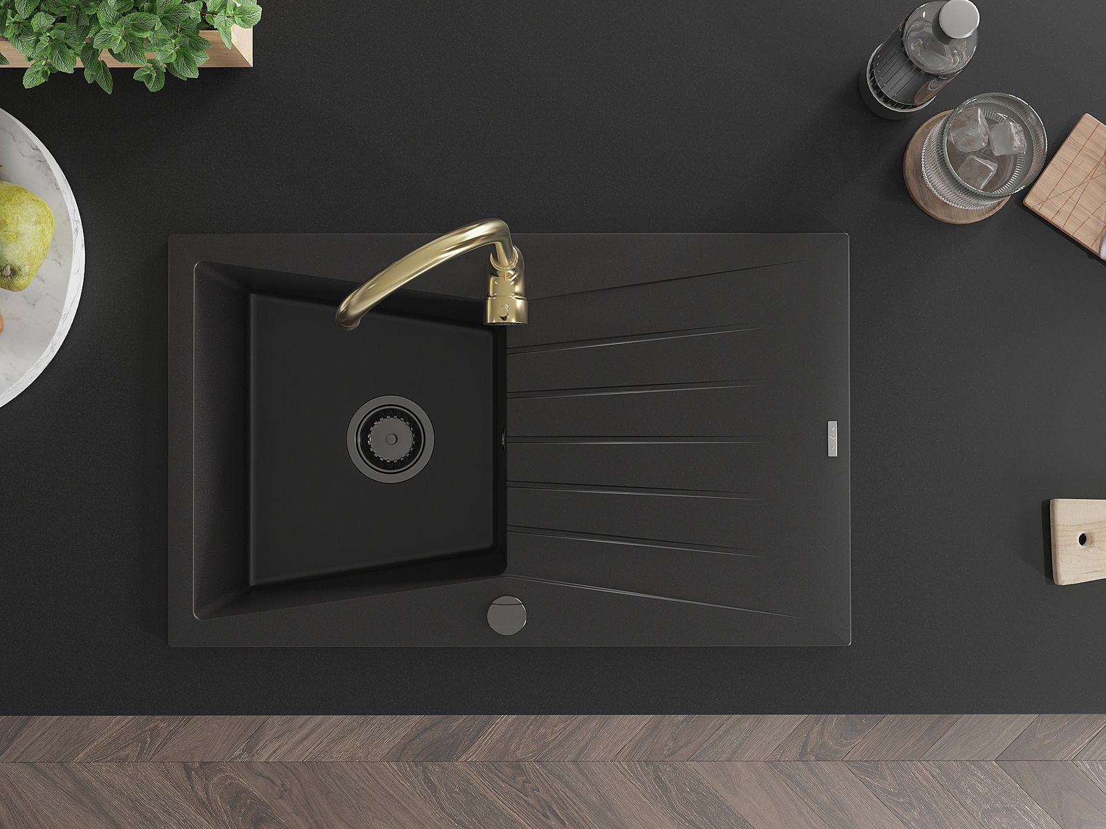 Mexen Cesar vienos dalies plautuvė su nutekėjimo zona ir virtuvės maišytuvu Telma, juoda - 6514-77-670200-50-B