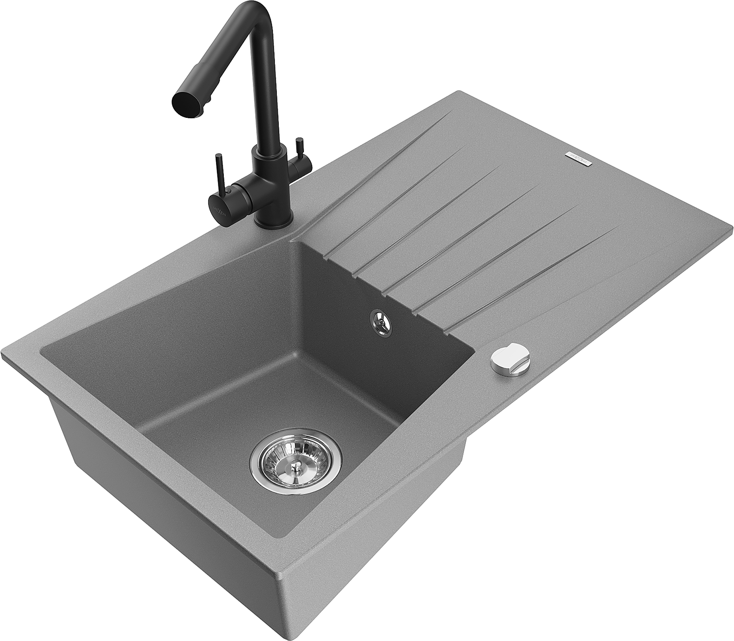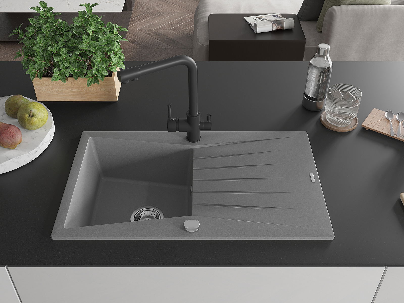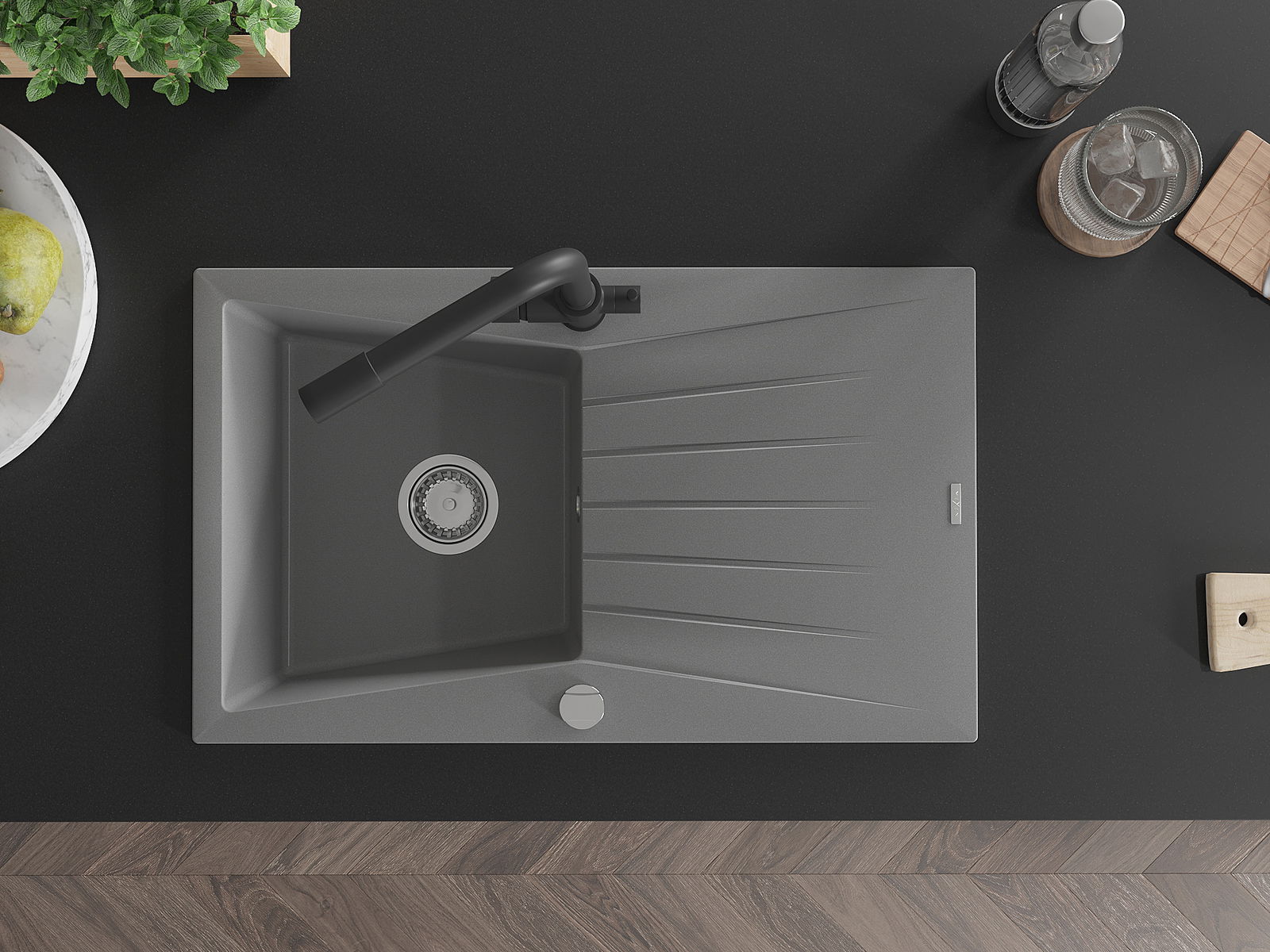Mexen Cesar granito plautuvė 1 skyriumi su nuovarėliu ir Duero virtuviniu maišytuvu, pilka - 6514-71-671600-70