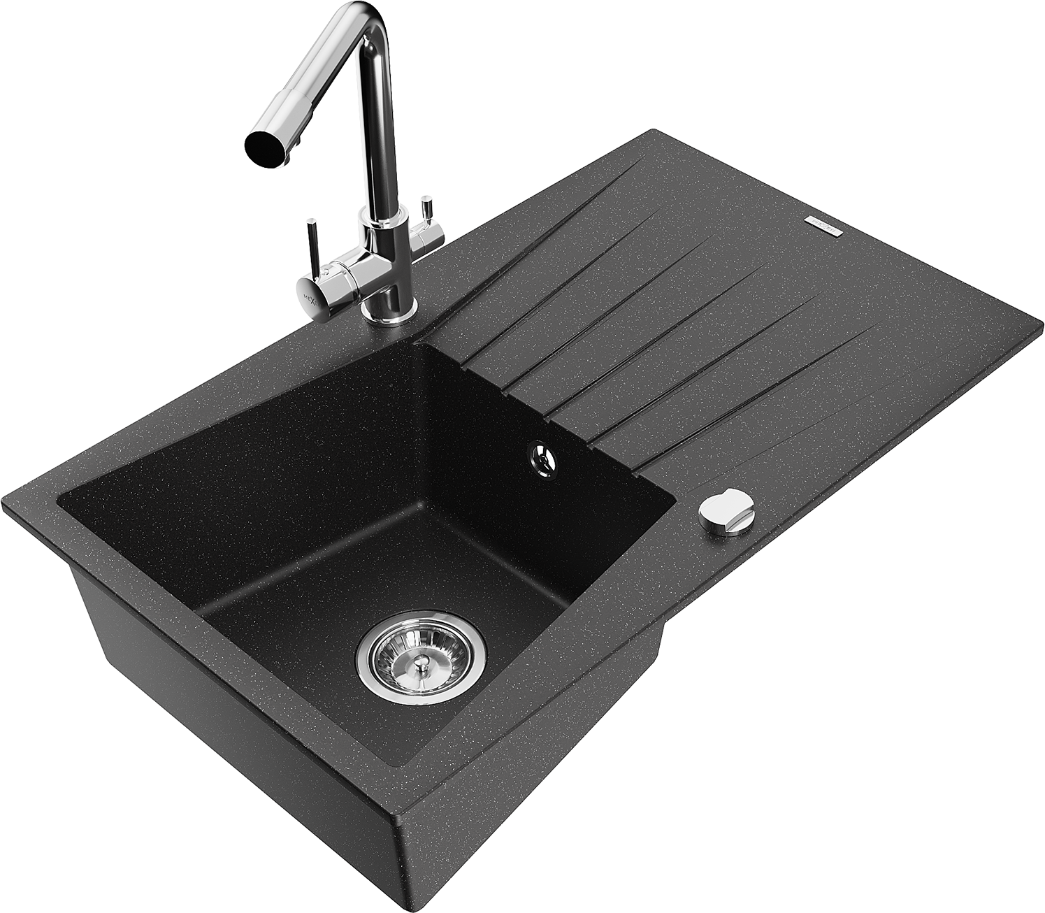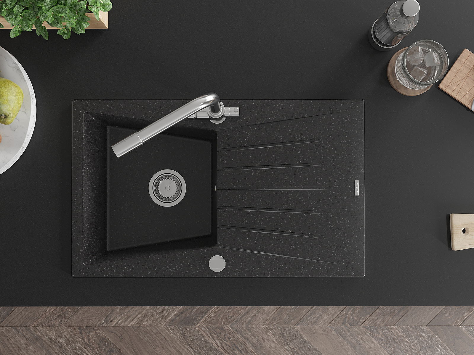 Mexen Cesar granitinė kriauklė su nutekėjimu ir virtuvės maišytuvu Duero, juodas/sidabrinis metalikas - 6514-73-671600-00