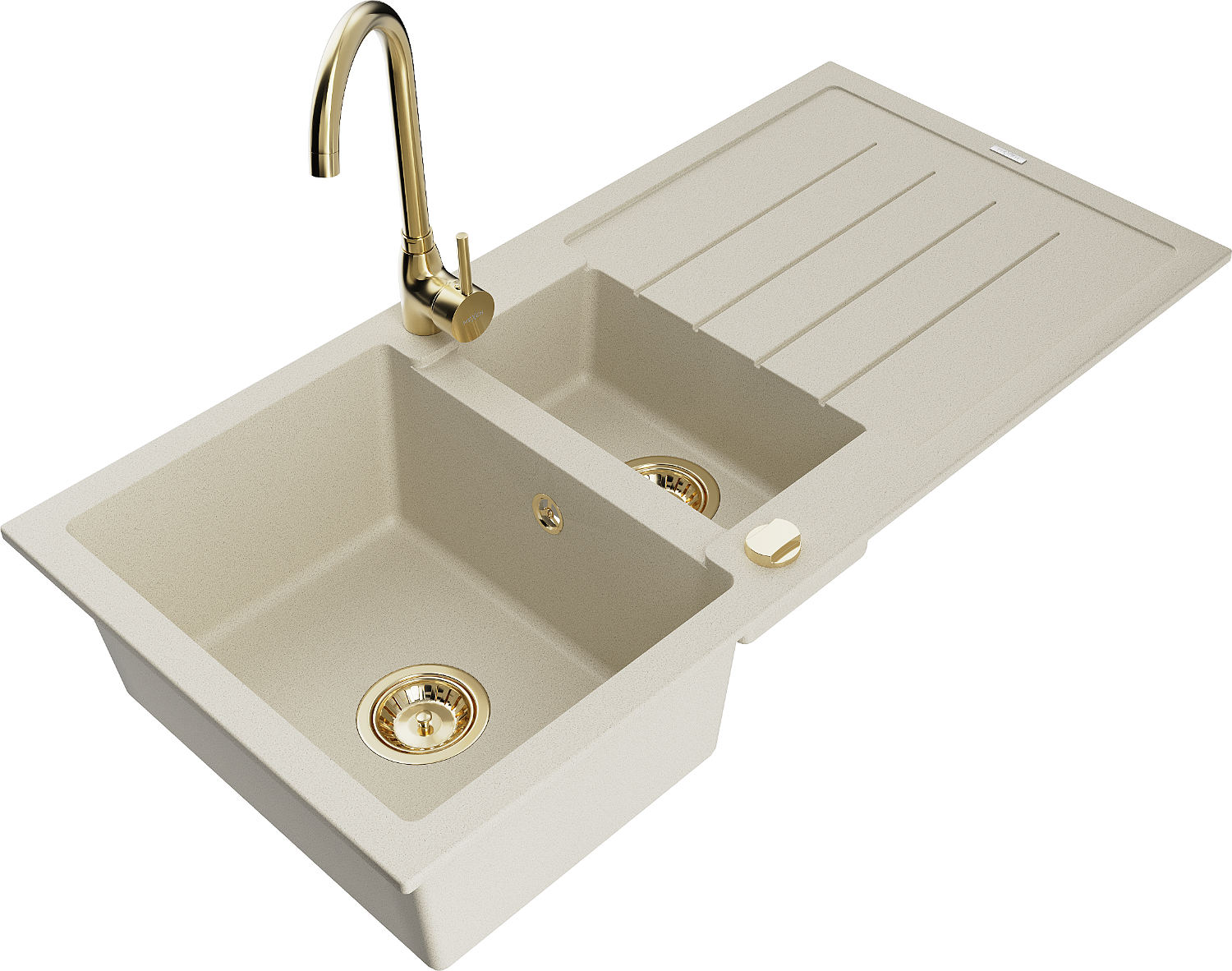 Mexen Andres granito plautuvė su 1,5 kameromis ir lašėjimo zona, su Telma virtuvės baterija, smėlio spalvos - 6515-69-670200-50