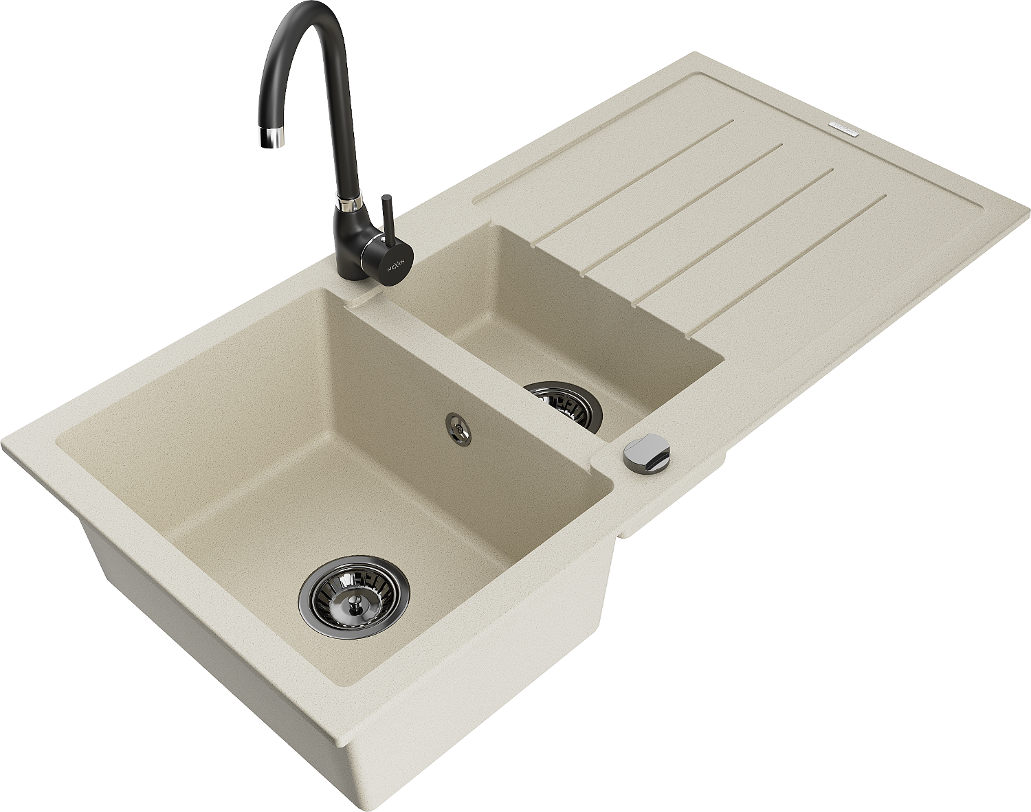 Mexen Andres granito plautuvė 1,5 kamerų su nusausinimo lentyna ir virtuviniu maišytuvu Telma, smėlinis - 6515-69-670200-70