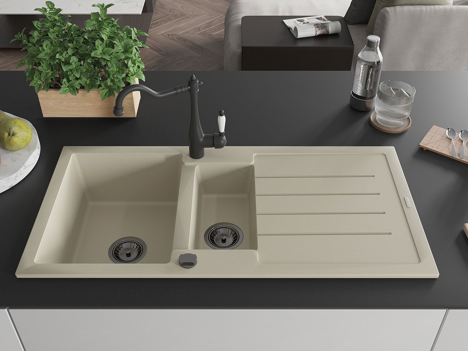 Kriauklės paviršius yra atsparūs dėmėms ir spalvos pasikeitimui, dėl kurio lengva valyti ir ilgą laiką išlaikyti savo spalvą. Estetinis ir praktiškai papildantis kiekvieną virtuvę.