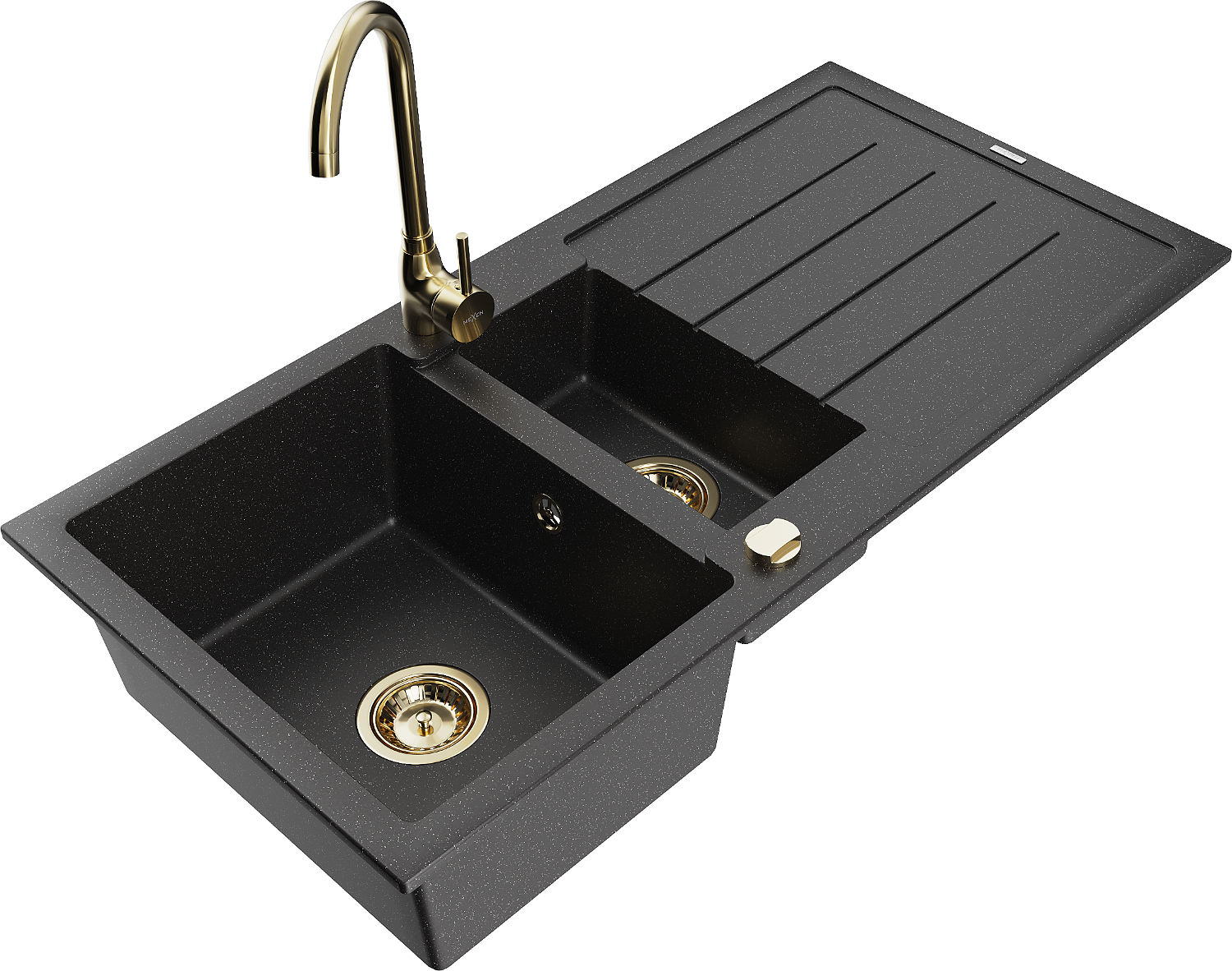 Mexen Andres granitinė 1,5 kamerų plautuvė su nutekėjimu ir Telma virtuvės maišytuvu, juoda/sidabrinė - 6515-73-670200-50