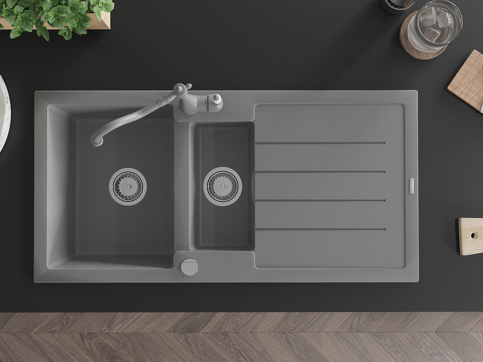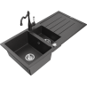 Mexen Andres granito plautuvė 1,5 skyrių su nusausinimo lentyna ir virtuviniu maišytuvu Carla, pilka - 6515-71-670700-71