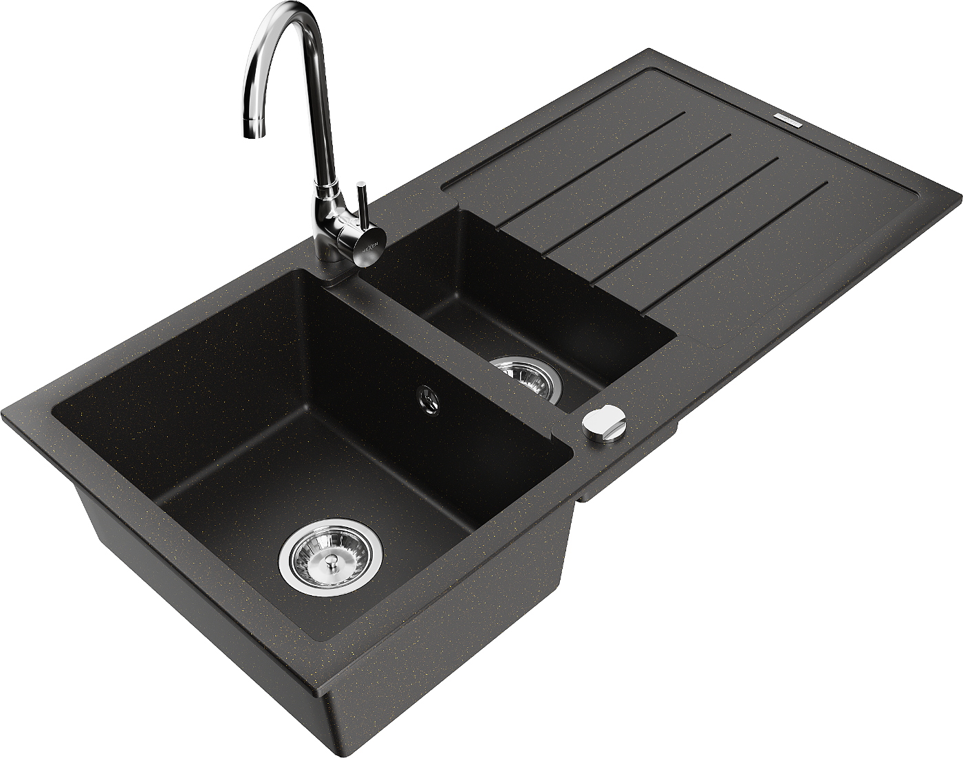 Mexen Andres 1,5 skyrių granitinė plautuvė su nusausintuvu ir virtuviniu maišytuvu Telma, juoda/auksinė - 6515-75-670200-00
