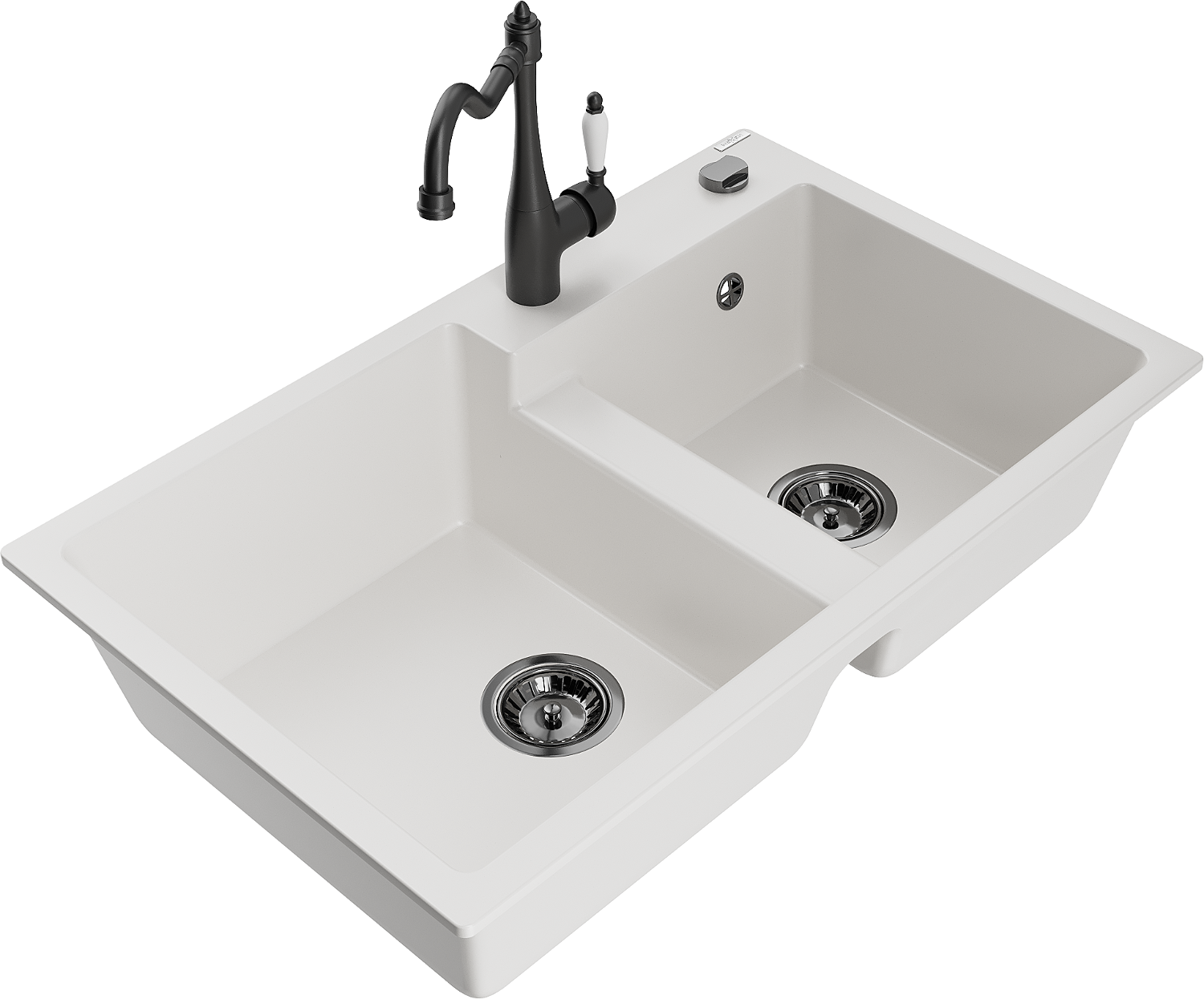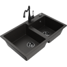 Mexen Tomas granito dviejų skyrių kriauklė su virtuviniu maišytuvu Carla, balta - 6516-20-670700-70