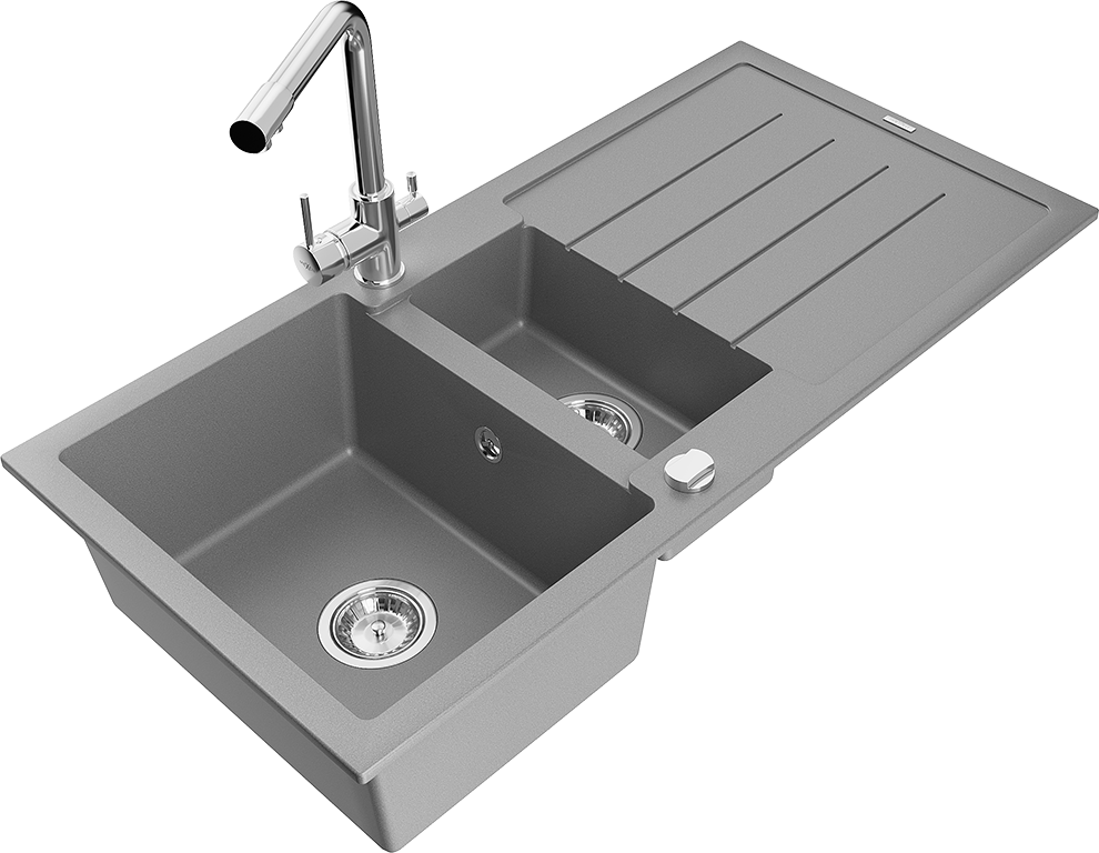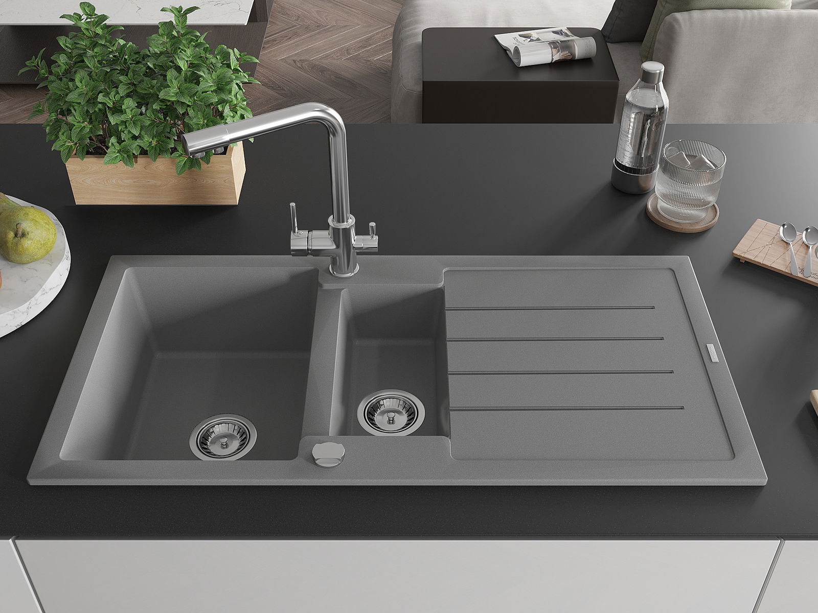 Mexen Andres granito kriauklė 1,5 kameros su nusausintuvu ir virtuviniu maišytuvu Duero, pilka - 6515-71-671600-00