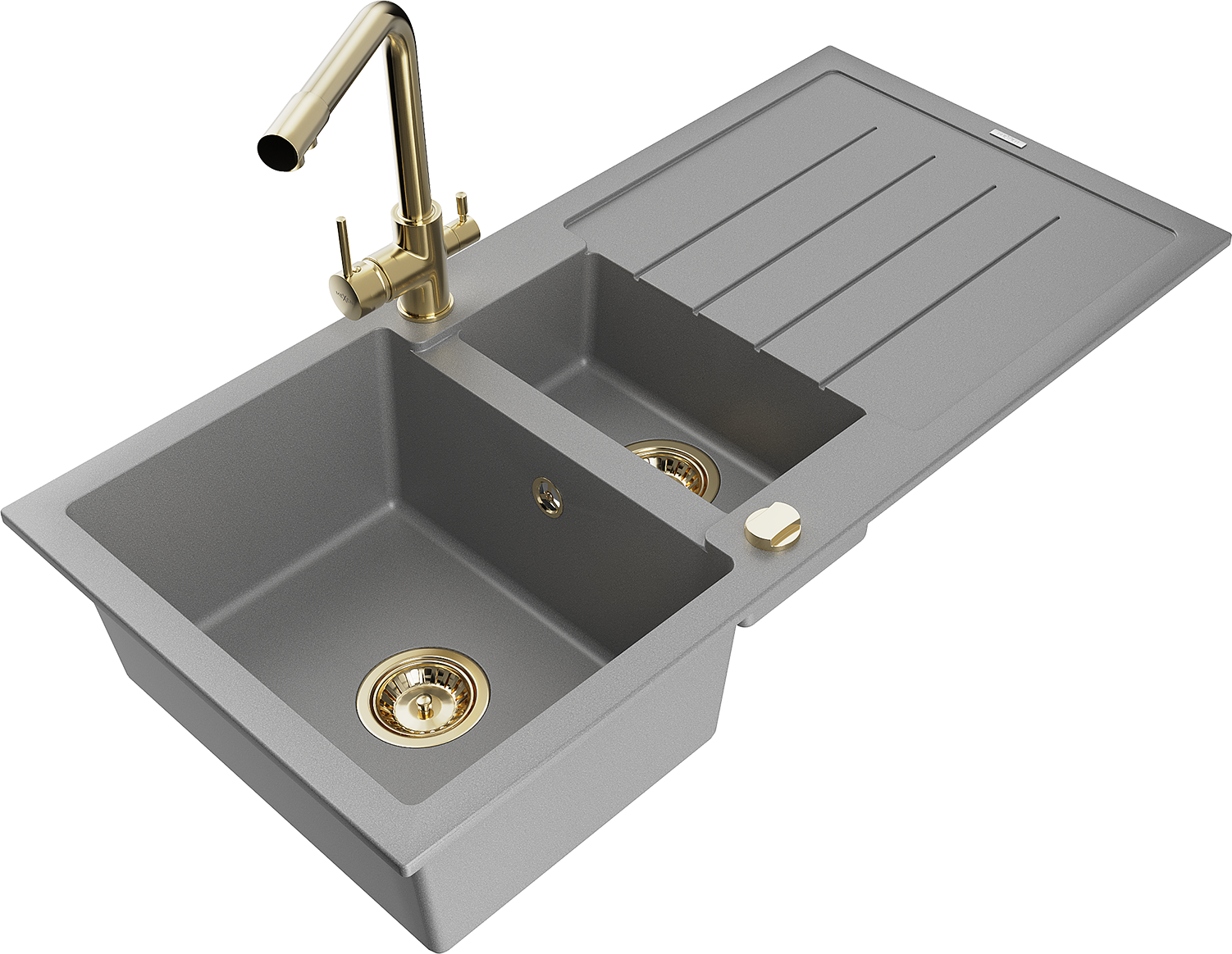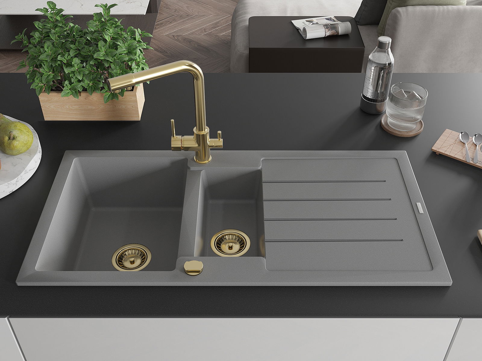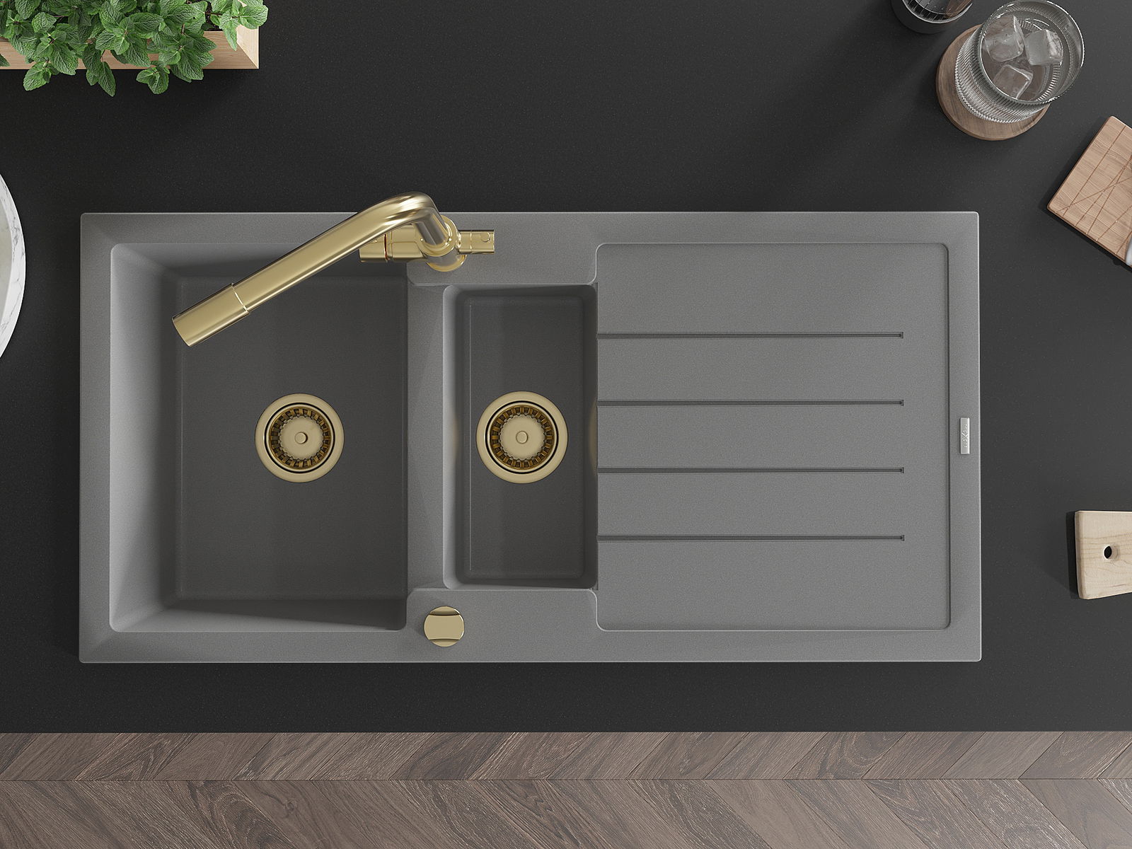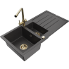 Mexen Andres granitinis virtuvės kriauklė 1,5 kamerų su džiovyklė ir virtuvės maišytuvas Duero, pilkas - 6515-71-671600-50