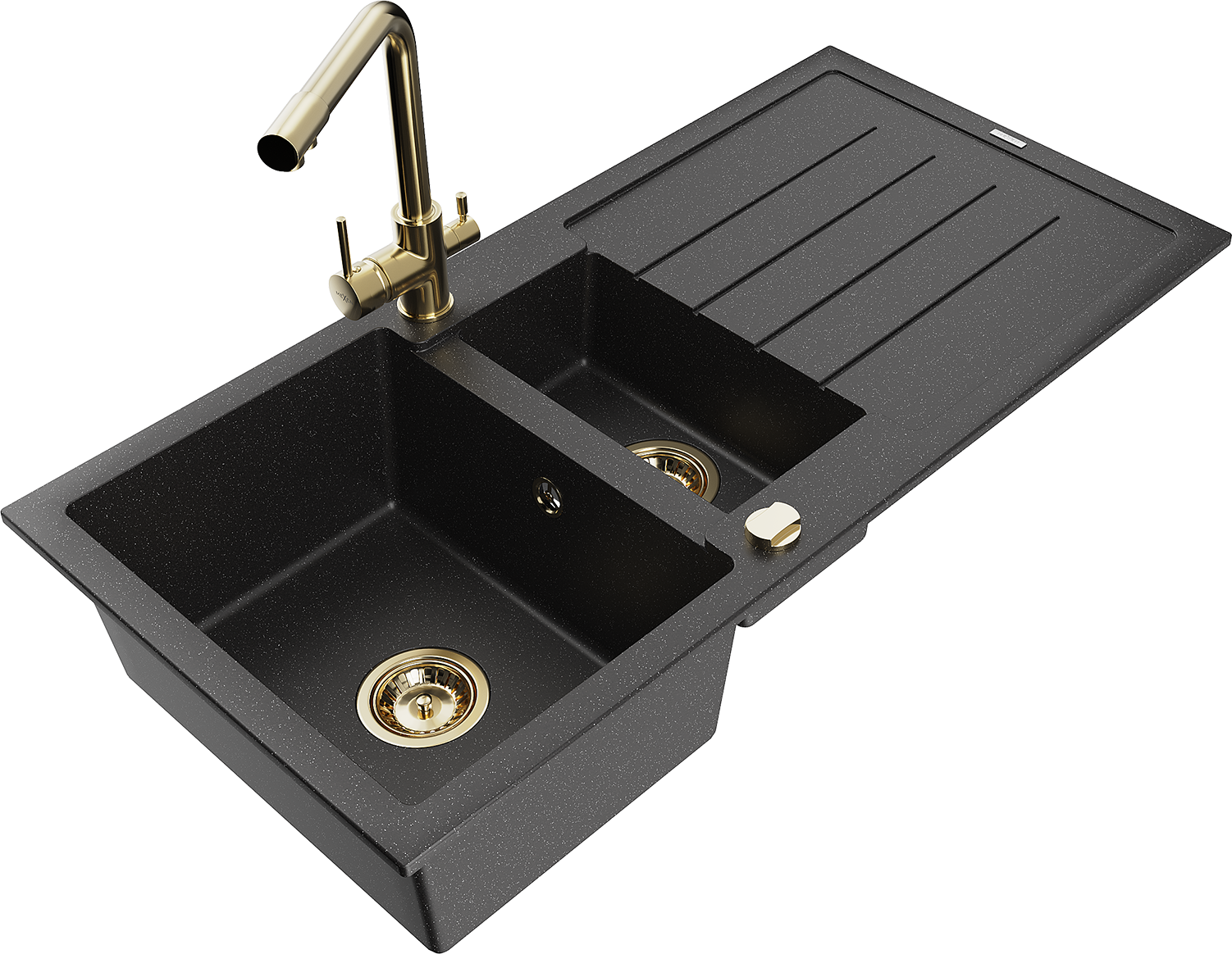 Mexen Andres granitinė 1,5 kamerų plautuvė su nutekamu ir virtuviniu maišytuvu Duero, juoda/sidabrinė - 6515-73-671600-50