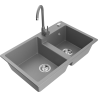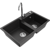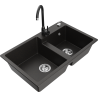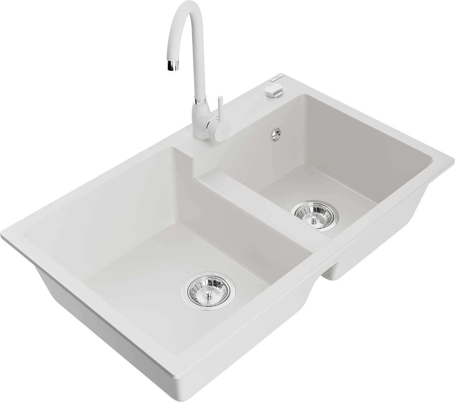Mexen Tomas dviejų kamerų granito kriauklė su virtuvės maišytuvu Telma, balta - 6516-20-670200-20