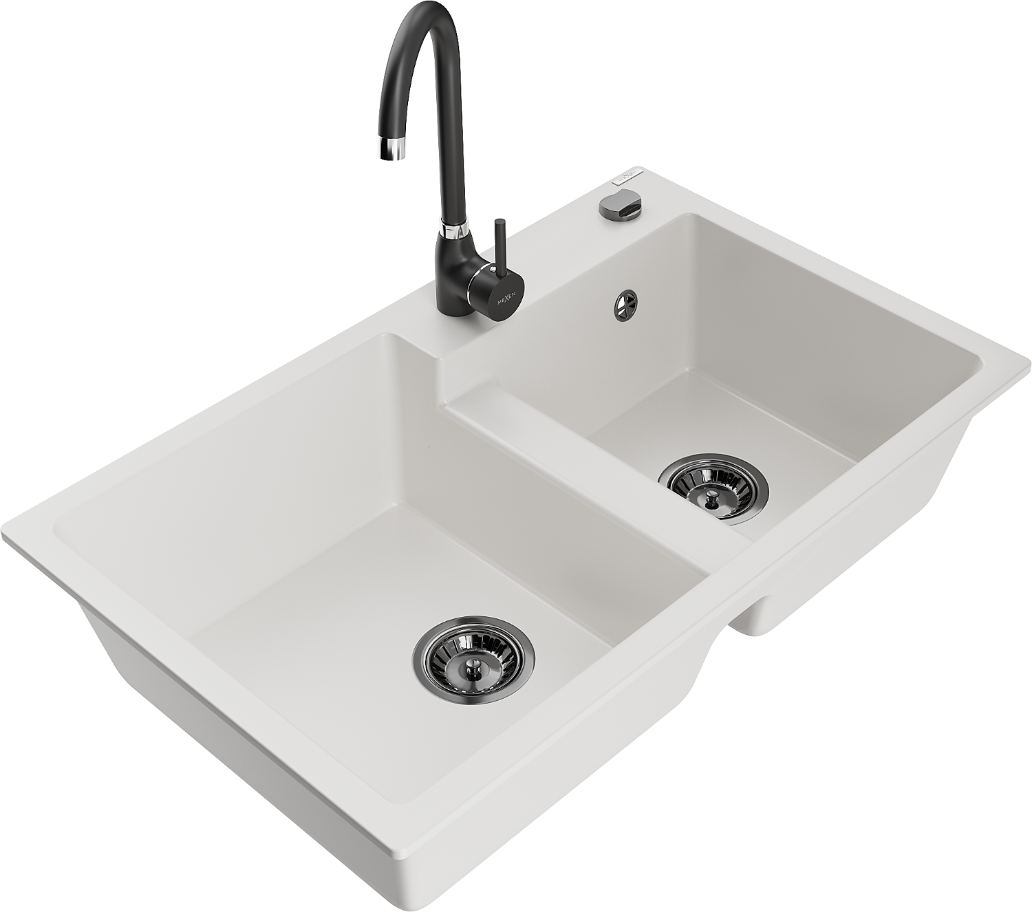 Mexen Tomas granito plautuvė 2-dalių su virtuviniu maišytuvu Telma, balta - 6516-20-670200-70