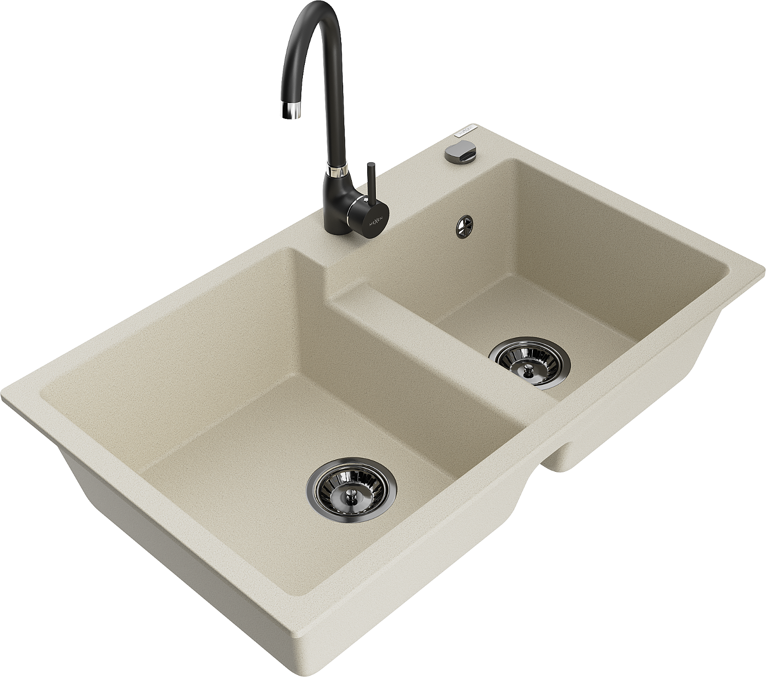 Mexen Tomas granitinė dviejų skylių virtuvės plautuvė su maišytuvu Telma, smėlio spalvos - 6516-69-670200-70