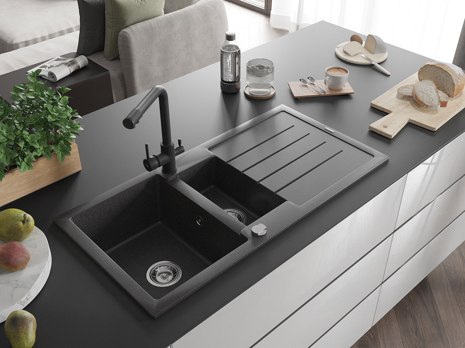 Kriauklės paviršius yra atsparūs dėmėms ir spalvos pasikeitimui, dėl kurio lengva valyti ir ilgą laiką išlaikyti savo spalvą. Estetinis ir praktiškai papildantis kiekvieną virtuvę.