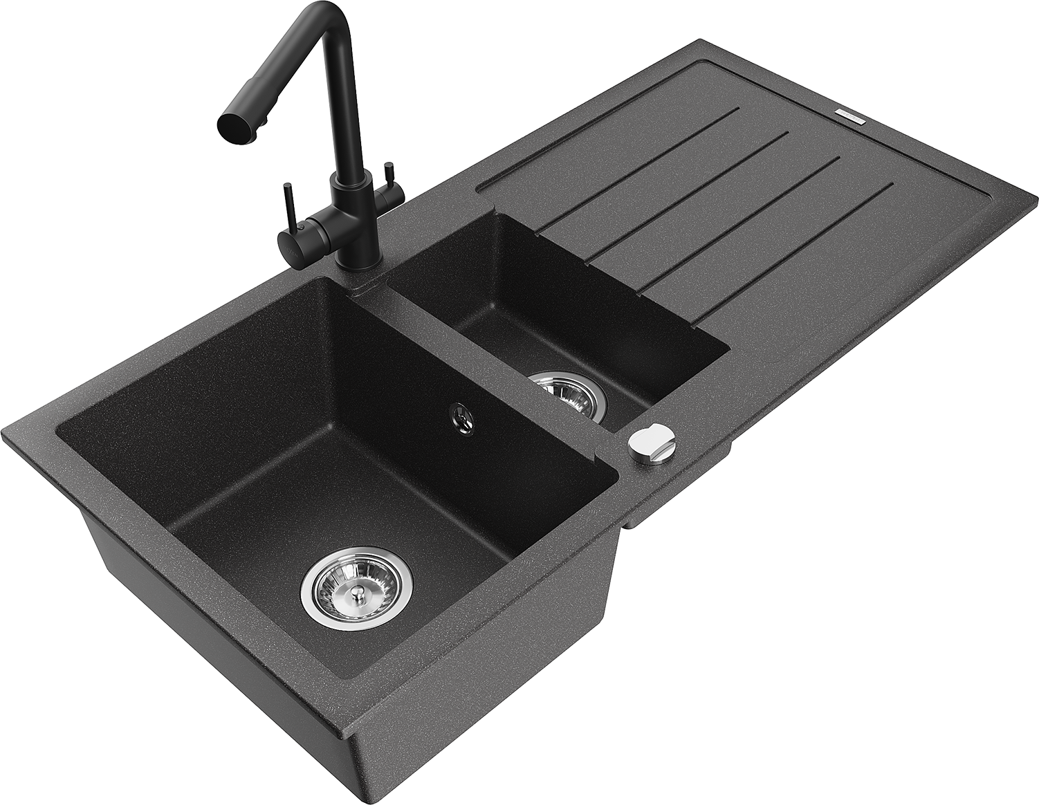 Mexen Andres granitinė 1,5 kamera plautuvė su nutekėjimu ir virtuviniu maišytuvu Duero, juodas dėmėtas - 6515-76-671600-70