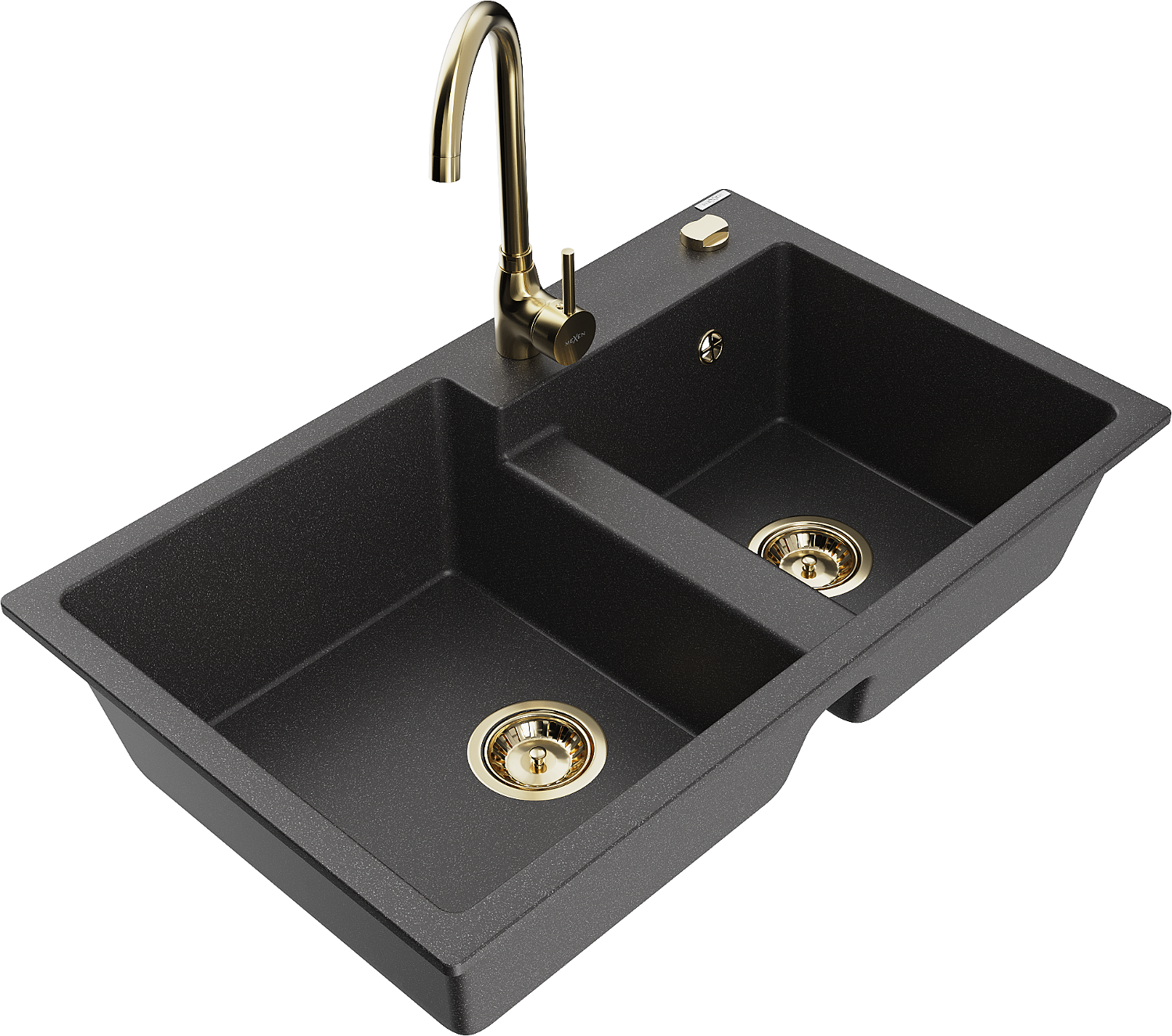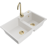 Mexen Tomas granito plautuvė su dviem kameromis ir virtuvės maišytuvu Telma, juodas dėmėtas - 6516-76-670200-50