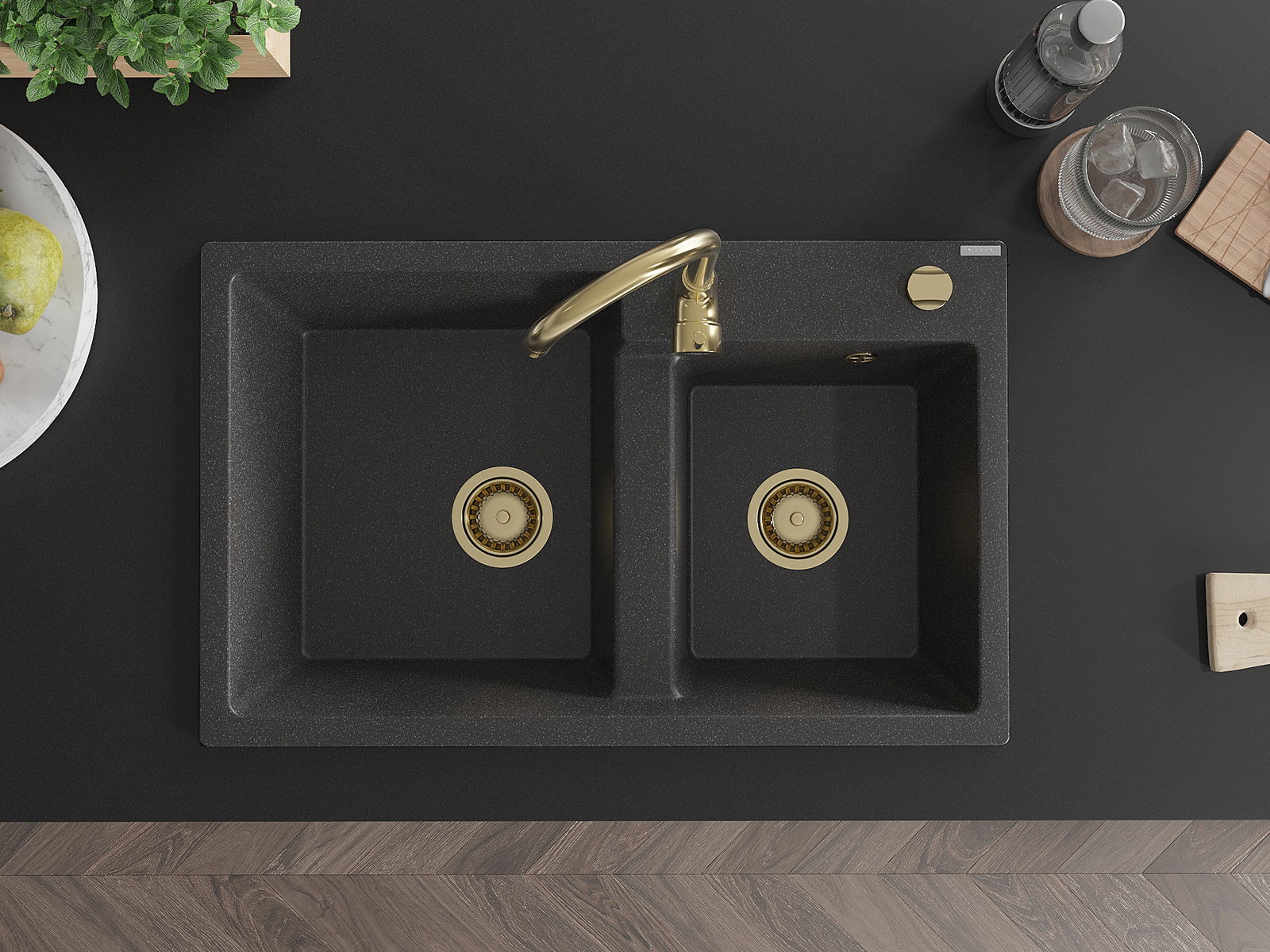 Kriauklė turi išfrezuotą angą, kurios skersmuo 35 mm, kad būtų galima savarankiškai išmušti. Ją galima panaudoti, pvz., montuojant skysto muilo dozatorių, kuris pašalins plastikinių butelių buvimą virtuvėje ir suteiks jai elegantišką apdailą.
