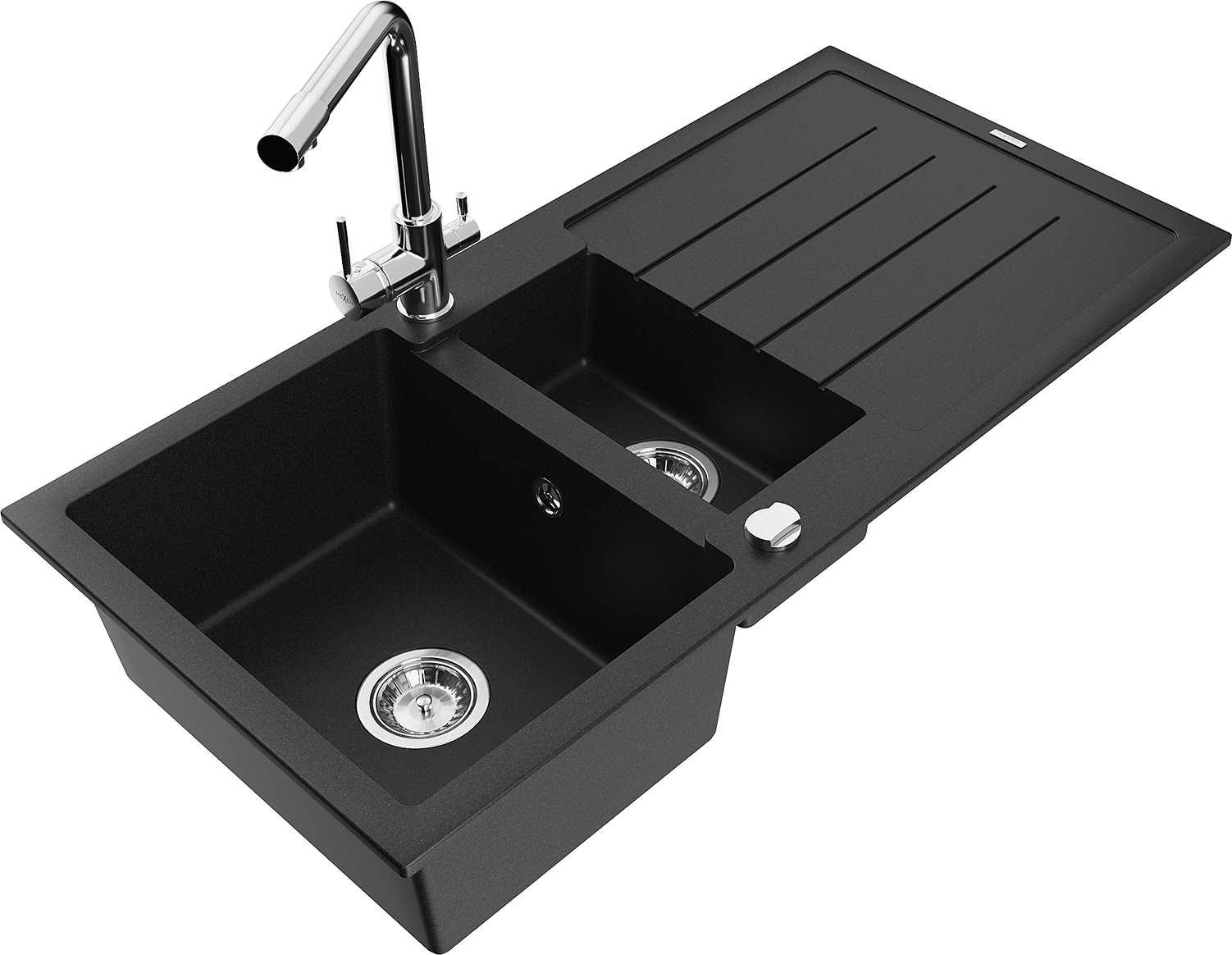 Mexen Andres granito plautuvė 1,5 skyrių su nusausintuvu ir Duero virtuvės maišytuvu, juodas - 6515-77-671600-00
