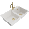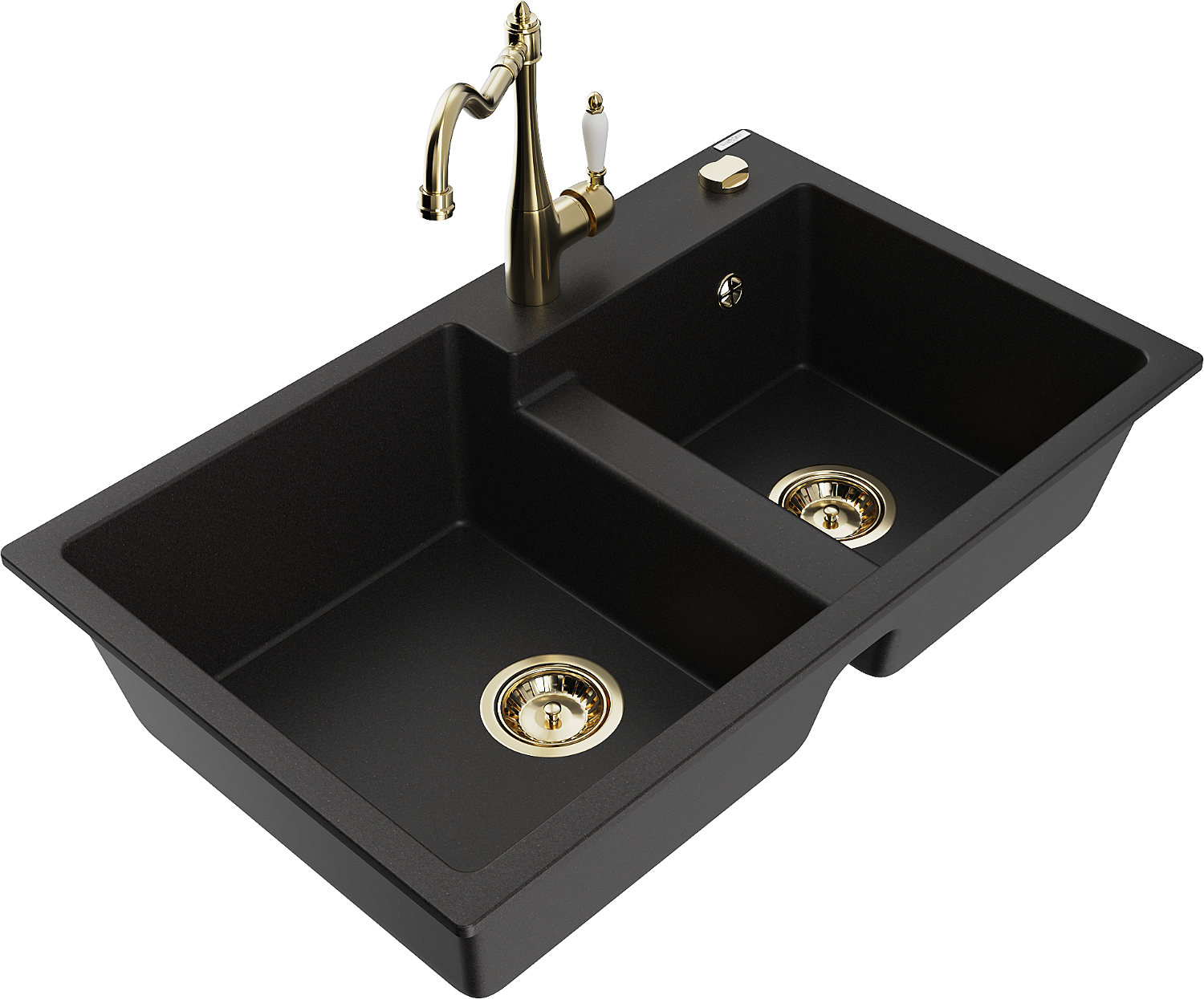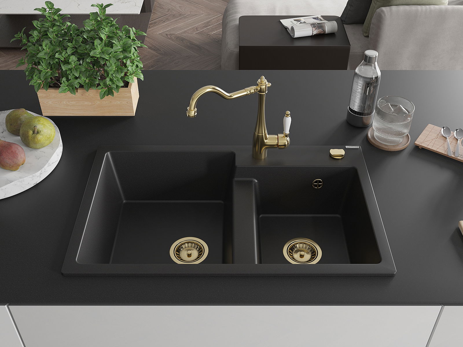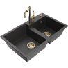 Mexen Tomas granitinė dviejų skyrių kriauklė su Carlos virtuviniu maišytuvu, juoda - 6516-77-670700-50