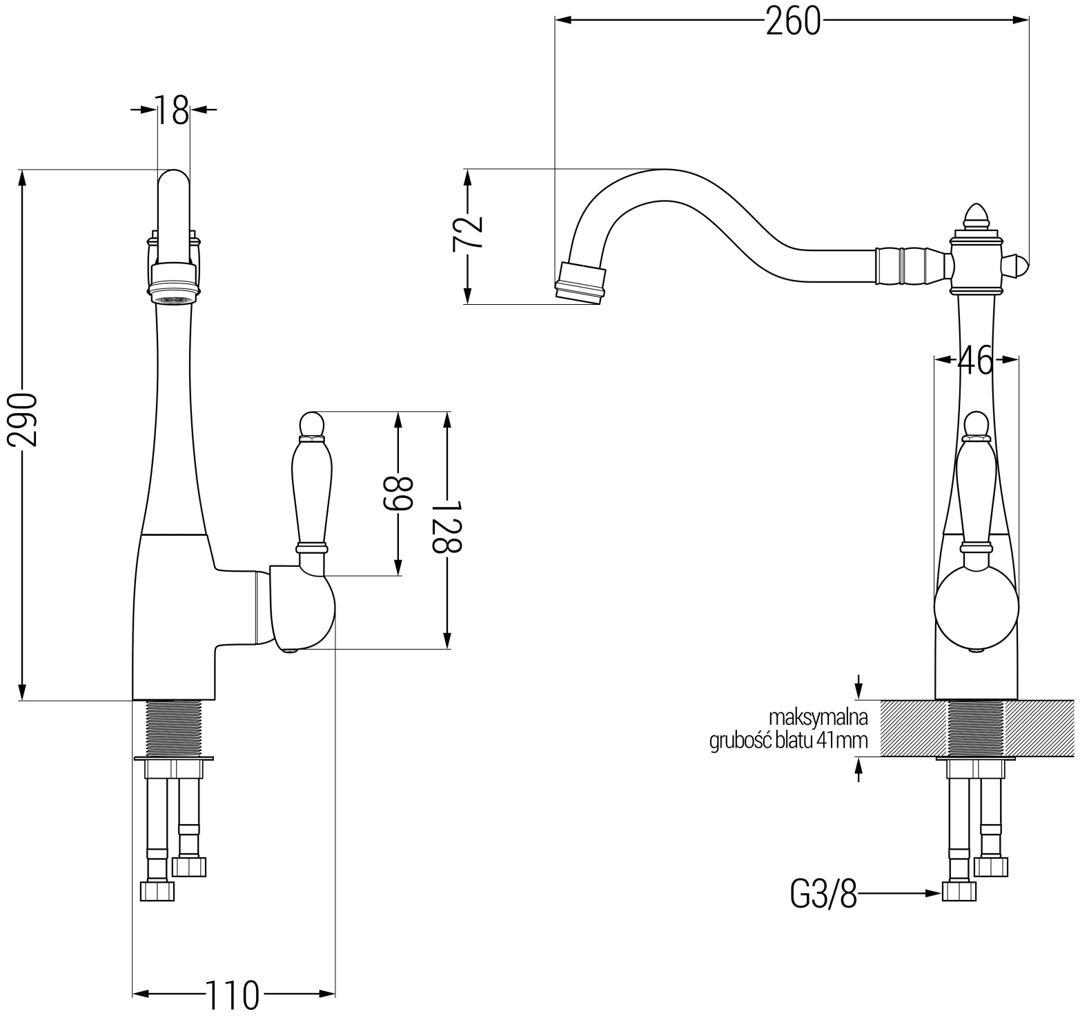 Kriauklė turi išfrezuotą angą, kurios skersmuo 35 mm, kad būtų galima savarankiškai išmušti. Ją galima panaudoti, pvz., montuojant skysto muilo dozatorių, kuris pašalins plastikinių butelių buvimą virtuvėje ir suteiks jai elegantišką apdailą.